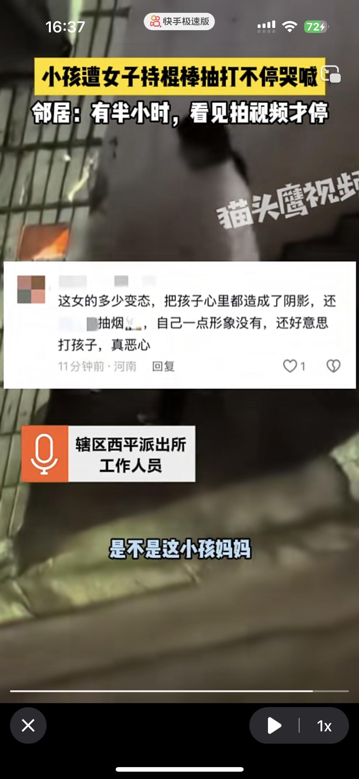 法律社会救了她!不知道的还以为是后妈 一边叼着烟,一手拿着棍子挥舞着打向几岁的女儿。 还要求女儿扎马步,女儿哭喊着引来路人的目光。妈妈居然辱骂路人,还对女儿不依不饶的,持续了半个小时的抽打才停止。才那么小的孩子,不管她做错什么也不该这么打呀!难道是后妈吗?