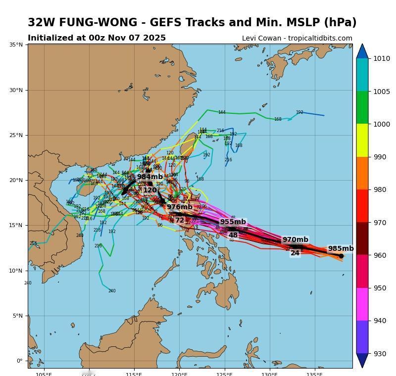今天白天,凤凰继续增强,体型也在变大,目前正在构筑眼区,今晚到后天早晨,强度可能迅猛增强,达到超强台风。目前的环流形势、台风的强度变化,有些类似去年11月台风天兔时的情况(图3)。台风在北侧副热带高压的引导下,先奔菲律宾吕宋岛。登陆前后,副热带高压减弱东退,给台风让出北上的通道,使得台风转向北。看今年的凤凰是否会重走去年天兔的老路。