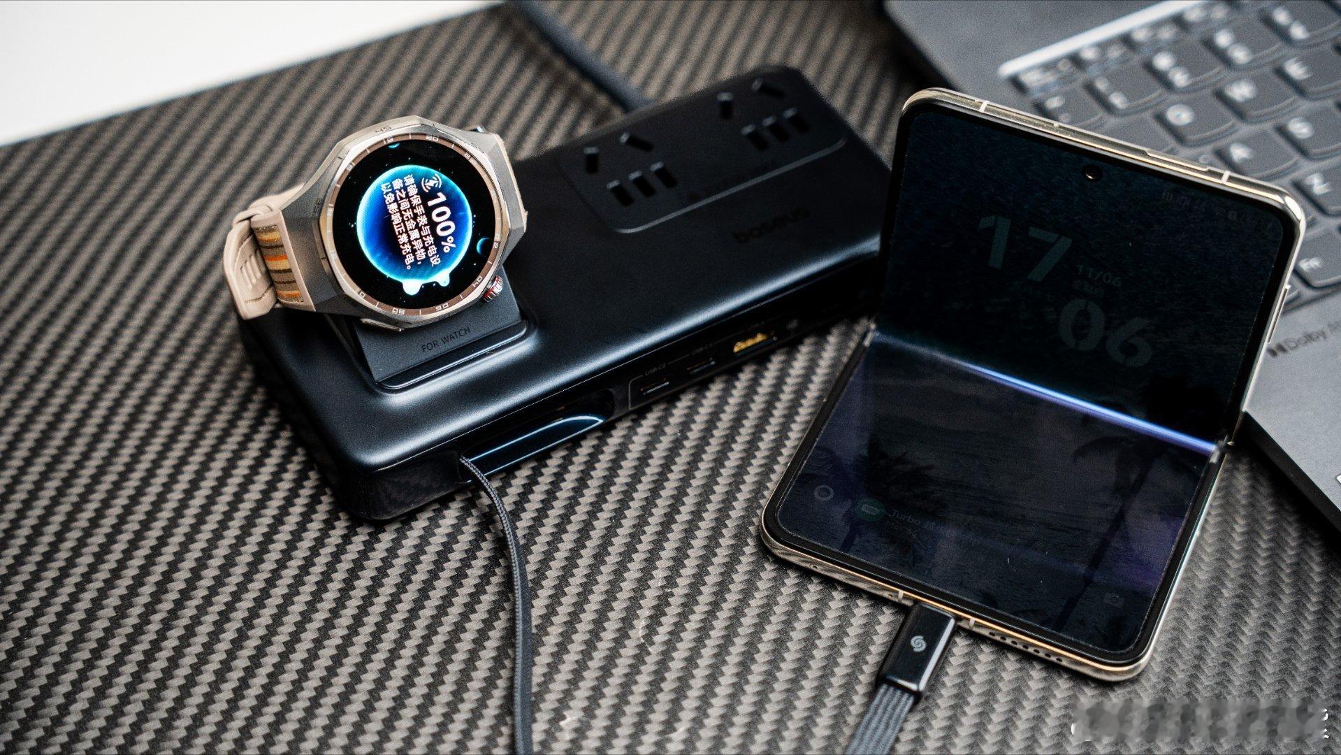 充电效率完全超出预期,华为手机用自带伸缩线充,66W超级快充实打实,跟原装充电器速度没差;最惊喜的是华为手表专属无线充,0-90°可调节角度,再也不用单独带手表充电底座。跨品牌用着也省心,给我的苹果手机、小米手环这些补电也完全适配,不用再为不同品牌换充电头。
