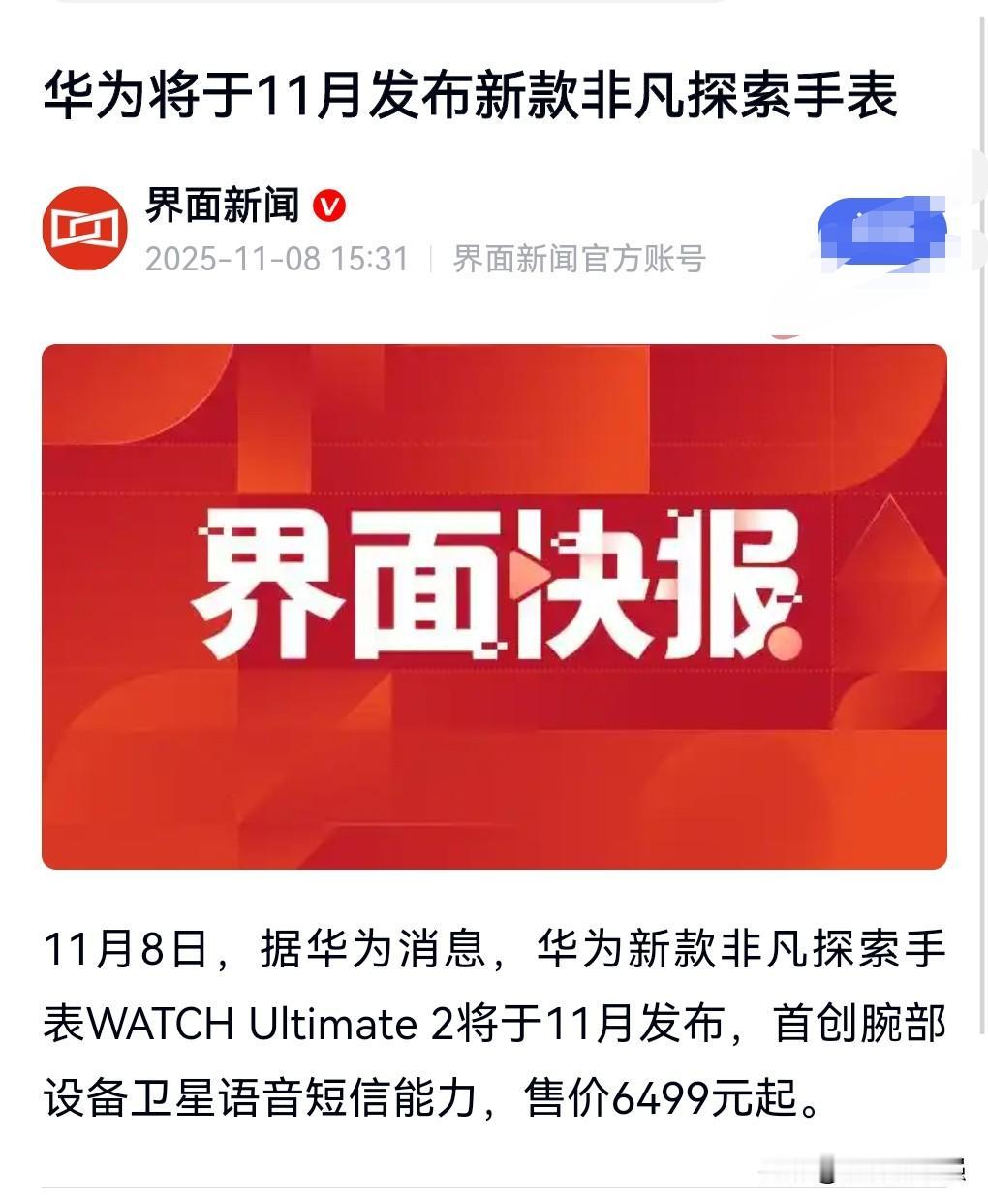 这到底是什么手表啊?卖这么贵,大几千块钱啊。 华为新款非凡探索手表,将在11月发布,售价6499元起。 希望这个手表的功能强大一点,不然真对不起这么高的价格。 对于这个价格,网上说什么的人都有,有反对的,也有支持的。 有人说这个价钱比那些外国的奢侈品性价比强多了。 这么一比,那确实强多了。 不过还是要经得起大众的口碑。