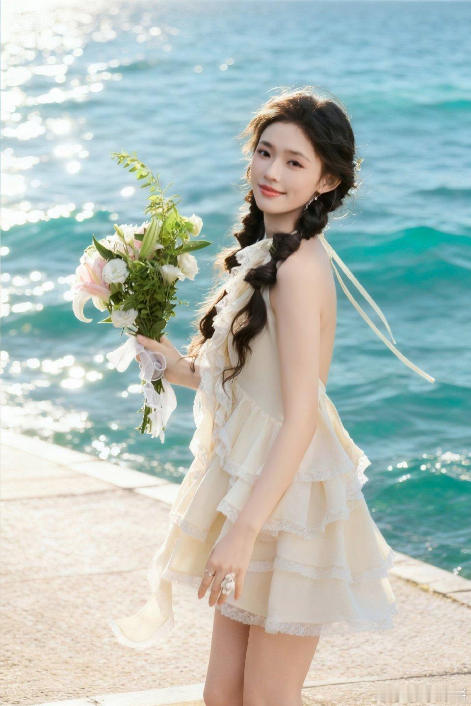 林允这双麻花辫+挂脖裙也太会了吧!发尾卷卷的还带小装饰,笑起来甜到我心巴