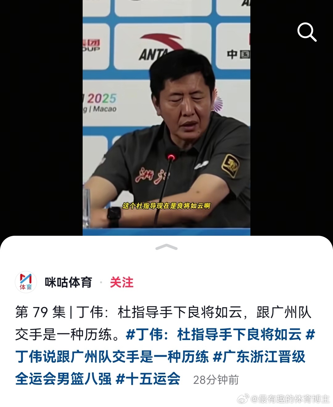 赛后采访,记者问丁团长,怎么看待前两场广东慢热的情况,丁团说我觉得他们不是慢热,