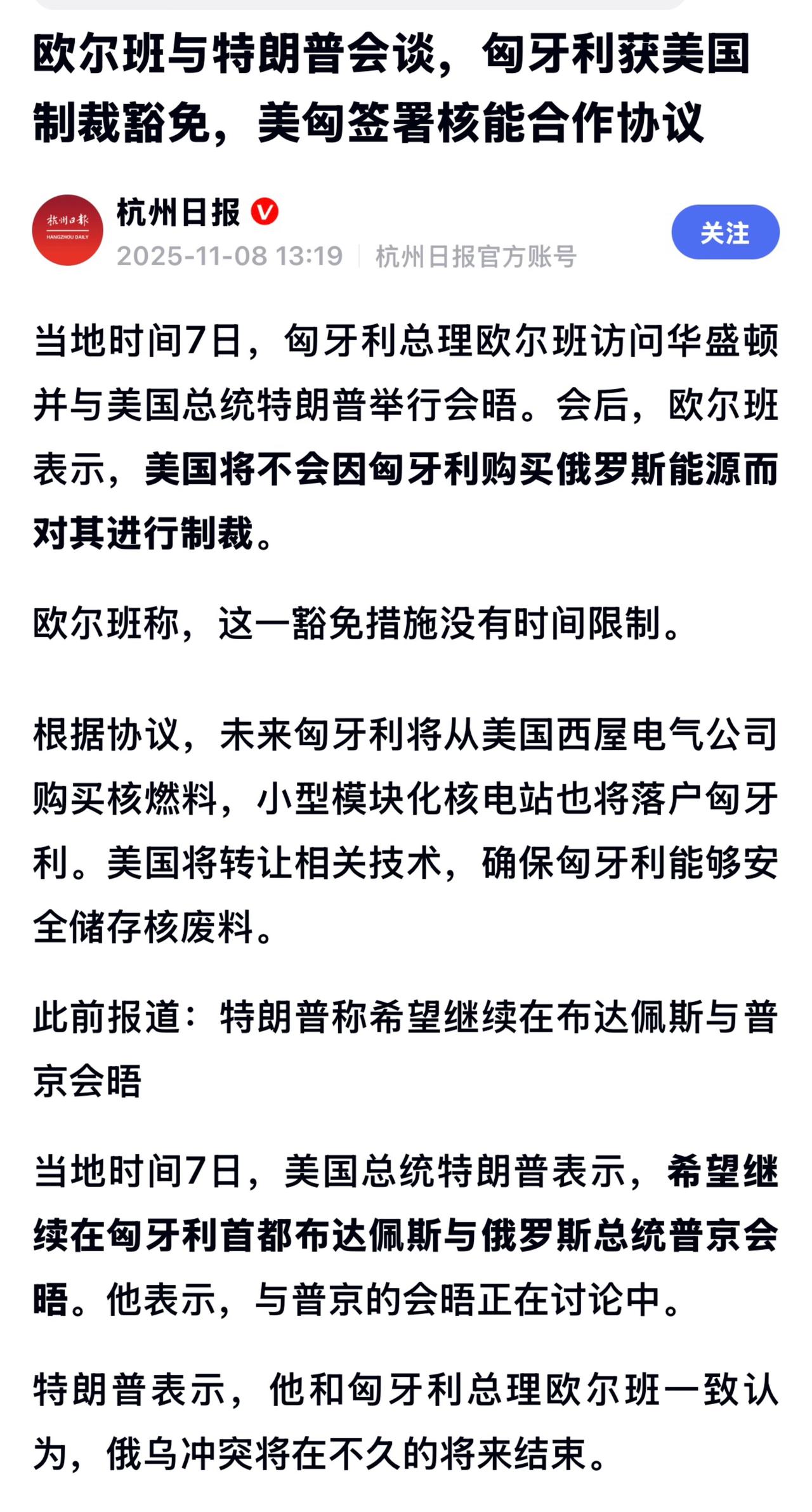 欧尔班的这一说法与白宫官员透露的豁免仅为期一年的说法相矛盾,引发关注。 此前,一名白宫官员曾向媒体透露,此次豁免的期限仅为一年。这名官员还说,除制裁豁免外,匈牙利方面还承诺购买价值约6亿美元的美国液化天然气。