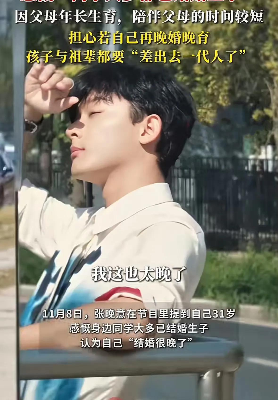 31岁张晚意自曝焦虑!担心晚婚晚育让孩子与祖辈"差出一代人"! 在《花儿与少年》最新节目中,31岁的张晚意坦言正被晚婚晚育问题困扰。 这位在荧幕上光彩照人的实力派演员,私下和许多同龄人一样,为"人生进度条"感到焦虑。他特别担心若结婚太晚,未来孩子与祖父母的相处时间会大大缩短,"原来明星也和我们有同样的烦恼!"其实每个人都有自己的时区,不必太过焦虑。愿我们都能按照自己的节奏,活出精彩的人生。31岁张晚意焦虑晚婚晚育 张晚意 张晚意综艺 张晚意生图 张晚意演技