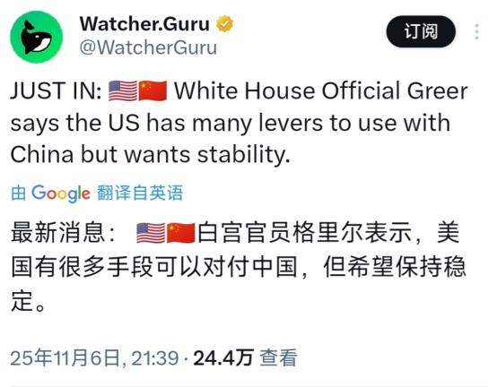 最新消息:美国贸易代表格里尔当地时间11月6日表示,美国有很多手段可以对付中国,但希望保持稳定。   其实这哥们儿最近戏挺多的,一边在公开场合不断放狠话,甚至威胁说可能要对华加征100%的关税,另一边呢,又通过媒体放风,强调“希望保持稳定”。这种左右横跳,本质上暴露了华盛顿内部那股子纠结劲儿——既想靠着对华强硬来捞取政治筹码,心里又门儿清,真要玩脱了,美国自个儿也得掉层皮。   格里尔这番看似矛盾的表态,可不是他一个人的即兴发挥。你瞅瞅最近这阵子,美方的操作才叫一个“精神分裂”。   就拿上个月来说吧,商务部那边刚吐槽完,说中美之前在吉隆坡的经贸磋商刚有点缓和苗头,结果短短20多天里,美方反手就推出了20项针对中国的打压措施。这其中包括搞了个什么“出口管制实体清单穿透性规则”,这一家伙就把几千家中国公司给“延伸”列进黑名单了。   这还不算完,他们还不顾中方反复沟通,硬是在十月份开始执行针对中国造船业的“301调查”港口费措施。这种“当面说好话,背后下绊子”的套路,咱们可见得多了。   说到格里尔这个人,他最近的言论可是相当强硬。他甚至公开把是否对中国商品加征100%的关税这事儿,直接挂钩到“中国的做法”上,摆出一副“球在中国这边”的审判官架势。更有意思的是,他还特意点名中国的稀土出口管制政策,说什么中国官员的表态“相互矛盾”。   这种指责纯属没事找事,咱们商务部早就解释得明明白白,稀土管制是依法行事,主要是为了履行防扩散这类国际义务,而且出台前早就向包括美国在内的相关国家通报过了,做法完全合规。格里尔非要这么高调地炒作,无非是想在国际上营造一种“中国在破坏规则”的假象,给他们后续可能采取的更强硬措施找借口。   但你得琢磨一下,为啥格里尔偏偏在这个时候跳出来,一边挥舞大棒,一边又念叨“稳定”?这背后其实是美国国内政治和经济压力的双重体现。从政治上看,特朗普政府时期留下的对华强硬政策,成了现在谁都不敢轻易触碰的“政治正确”。尤其是面对国内那些对华鹰派,比如某些国会议员,行政部门的官员必须表现得足够强硬。   但另一方面,经济现实又啪啪打脸。贸易战打了这么多年,数据不会撒谎——美国对华的贸易逆差并没见真正减少,而那些高额关税的成本,绝大部分其实是由美国的进口商和消费者在买单。   通胀压力摆在那儿,企业界要求减免关税的呼声也越来越高。所以格里尔的话,你可以理解为是说给国内不同派别听的:对鹰派,他展示的是“我们手段多得很,别急”;对商界和期待缓解通胀的人,他传递的是“我们在寻求稳定,不会乱来”。   实际上,美国这种“一边要谈,一边威胁恐吓”的套路,效果实在不咋地。历史证明,单方面的施压和关税战,根本解决不了美国自身的结构性问题,比如那个庞大的贸易逆差。反而会推高他们自家的通胀,损害美国港口竞争力和就业机会。   就像之前有分析指出的,特朗普政府发起的关税战,到头来反而让美国GDP受损,就业机会减少。   中国这边呢,应对得越来越从容。咱们早就加快了进口来源的多元化,比如大豆,之前大量从美国进口,现在呢,巴西、阿根廷等地都成了重要来源。   最近中国采购近18万吨美国大豆,这规模相比从南美的采购量只是零头,更像是一种商业行为和对当前市场价格的理性反应(例如新季美豆价格低于巴西大豆时)。这背后体现的是中国“不把鸡蛋放一个篮子”的战略布局越来越成熟,也是一种应对美国政策反复无常的底气。   所以,看明白了吧,格里尔所谓的“有很多手段”但“希望保持稳定”,本质上反映的是美国在应对中国崛起时的一种战略焦虑和两难境地。他们既想遏制中国的发展,又无法承受与中国全面“脱钩”甚至对抗所带来的巨大代价。   这种矛盾心理,导致其政策常常表现出“进一步、退半步”的摇摆特征。对于美方这种矛盾心态和两面做法,咱们中方的立场是一贯且清晰的:合作,我们欢迎,但必须建立在相互尊重、平等互利的基础上。   如果美方真心想维护经贸关系的稳定,就得拿出实实在在的诚意,立即纠正那些错误行为,而不是继续玩“一边要谈一边挥舞大棒”的危险游戏。毕竟,信任这玩意儿,重建起来可比破坏难太多了。