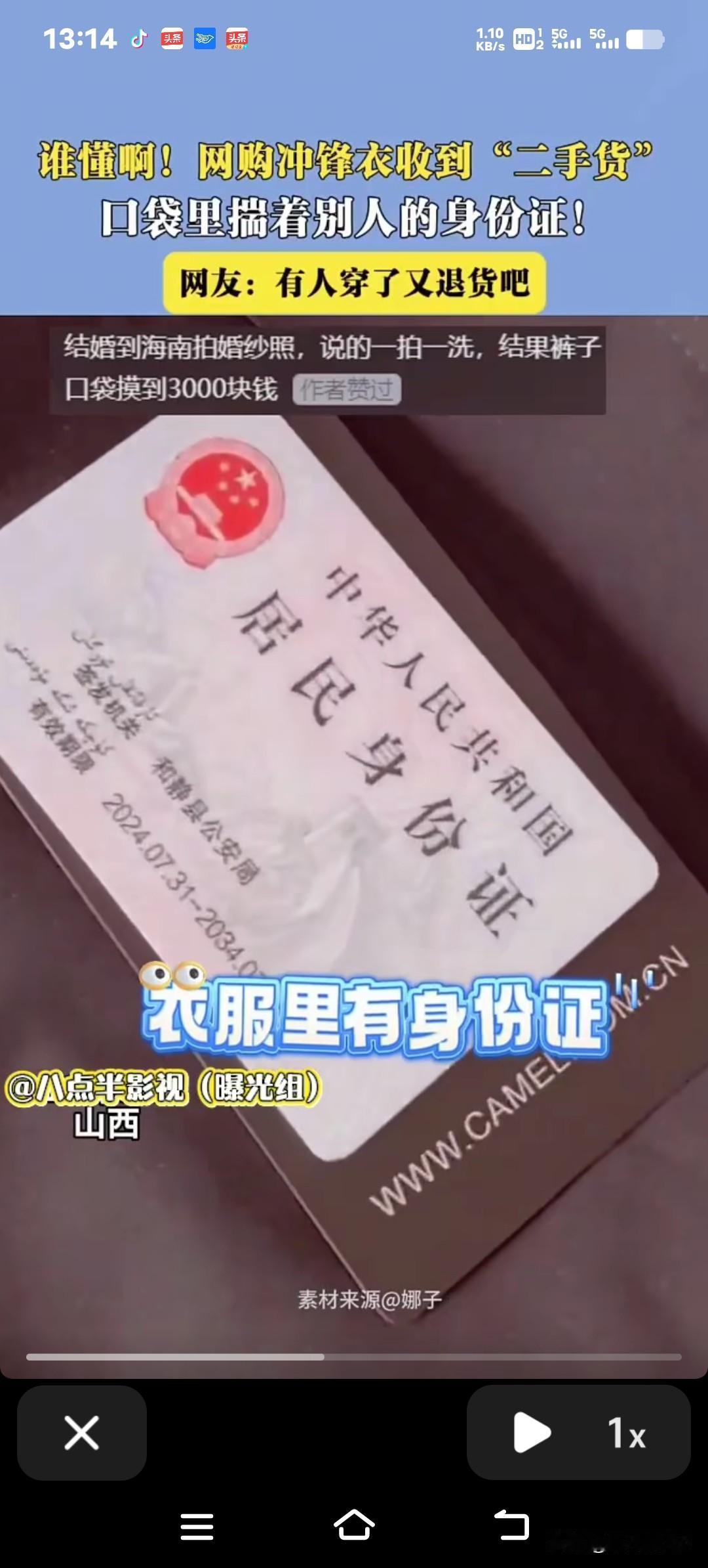 网购冲锋衣拆开快递,竟摸出"意外惊喜"!山西的李女士当场就懵了——原本期待的户外装备口袋里,躺着一张完全陌生的男士身份证!这事儿让她哭笑不得,本来想着周末去山里转转,特意挑了件新冲锋衣,结果颜色没对上不说,还"附赠"了这么个大乌龙。 她赶紧联系商家,对方解释说是仓库分拣时漏检查了,才把别人的证件混了进来。可网友们看到这事儿却不买这个说法:"这哪是发错货啊,分明是旧衣服没掏干净私人物品吧?"还有人开玩笑说:"建议找找身份证主人,说不定是之前试过衣服的买家落下的呢。" 目前李女士已经把身份证寄回给商家了,但这场奇葩乌龙也给所有网购的朋友提了个醒:买东西时可别光顾着看商品,收到快递先检查仔细,别让这些"惊喜包裹"吓一跳。你网购时遇到过什么离谱事儿?来分享下那些年收到的"带料"快递吧!