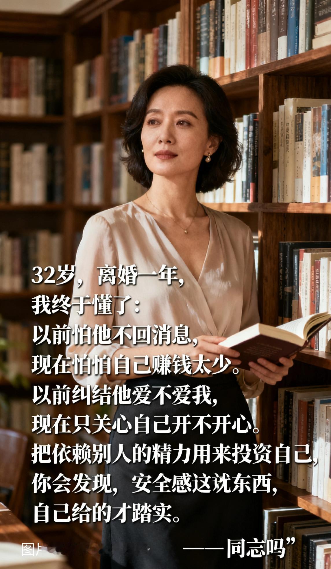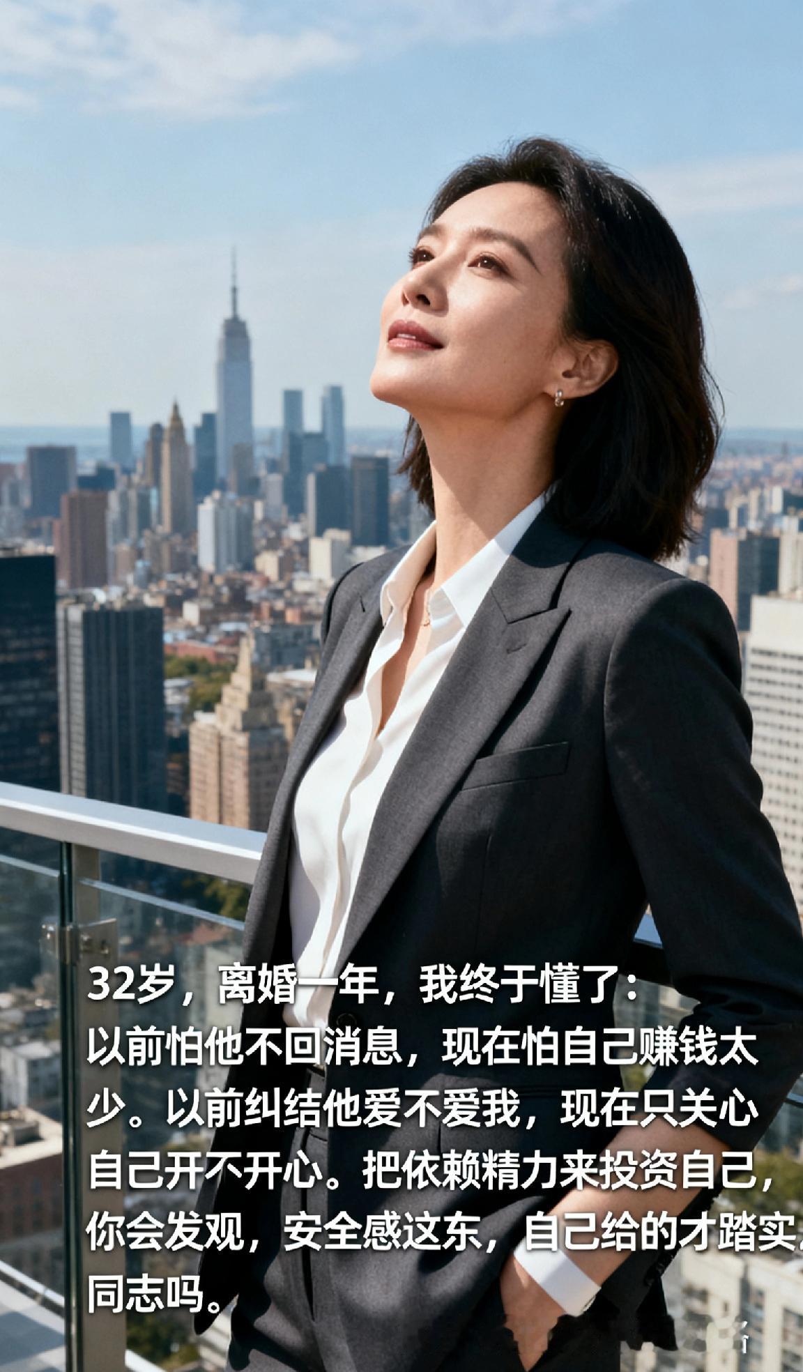 32岁离婚一年,我终于明白:靠自己,才是终身浪漫的开始 32岁,离婚一年,我终于懂了:以前怕他不回消息,现在怕自己赚钱太少。以前纠结他爱不爱我,现在只关心自己开不开心。把依赖别人的精力用来投资自己,你会发现,安全感这东西,自己给的才踏实。同意吗? 离婚前的我,活得像株攀附大树的藤蔓。手机不离手,就怕错过他的消息,秒回是常态,等待是日常;为了迎合他的喜好,戒掉了自己爱喝的奶茶,放弃了坚持多年的舞蹈课,把“他喜欢”当成“我喜欢”。那时候总以为,抓住了爱情就抓住了全世界,却忘了藤蔓离开大树,只会枯萎倒地。 离婚后的第一个月,我把自己关在房间里哭到崩溃,怕未来无依无靠,怕生活无法继续。直到房东催缴房租,我翻遍银行卡才发现,多年手心向上的日子,让我连基本的应急能力都没有。那一刻我突然醒悟:捏在手心的钱,永远比抓不住的心踏实。 我开始把等待消息的时间用来投简历、学技能,把纠结爱意的精力放在搞钱和取悦自己上。报了新媒体运营课,从深夜赶稿到凌晨,从剪视频手抖到熟练操作;周末不再宅家盼陪伴,而是去健身、看书、和朋友探店。当第一笔副业收入到账时,当我靠自己能力换了采光更好的房子时,那种踏实感,是过去十年婚姻从未给过的。 原来,经济独立才是女人最大的底气。不用在想买喜欢的东西时看别人脸色,不用在分歧时因经济劣势被迫妥协,更不用在感情里患得患失——当你能养活自己,能给自己想要的生活,就不会再害怕任何人的离开。 现在的我,不再为谁的忽冷忽热辗转反侧,只会为业绩不达标加倍努力;不再纠结谁爱不爱我,而是专注于让自己开心。我终于懂得,成年人的世界里,没有永远的靠山,把安全感寄托在别人身上,就像把伞撑在别人手里,人家一撒手,你就只能淋雨。 那些曾经以为跨不过去的坎,如今回头看,不过是成长的垫脚石。离婚不是终点,而是重新做自己的起点。当你开始投资自己、取悦自己,就会发现,人生最靠谱的靠山,从来都是那个努力向上、不依附他人的自己。 你是否也有过“靠别人却落空”的经历?或者正在努力给自己安全感?评论区聊聊你的故事,说说你心中的安全感是怎样的~