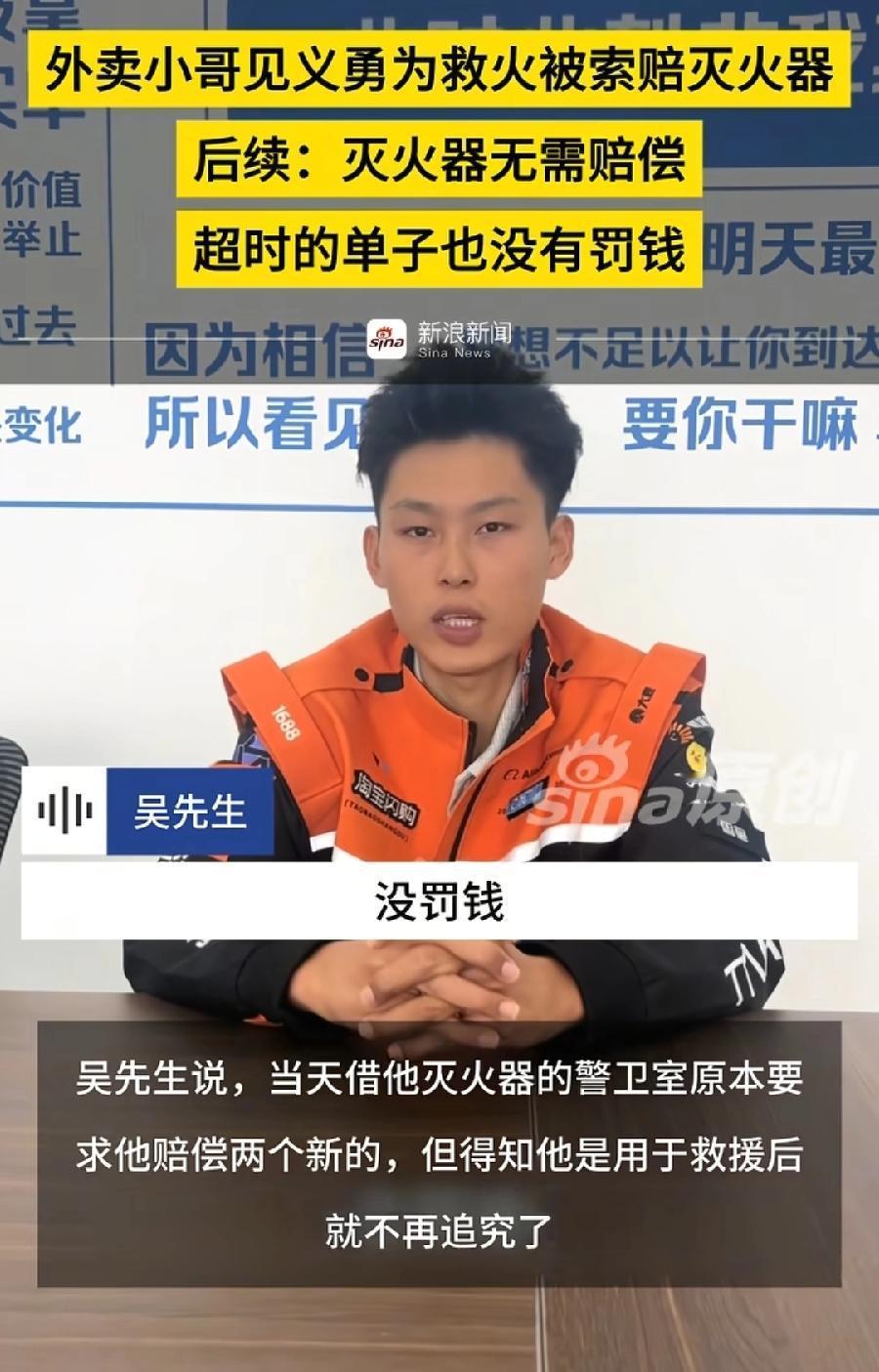 泰安借灭火器外卖小哥吴伟帅,太帅了!不只是救火时两手拎着灭火器,孤勇者的姿态帅极了,人长得也帅!当过特警,敢于见义勇为,就是与众不同有担当!至于网传被警务室索赔两个灭火器,是一场误会,得知为他人救火,没要赔了,应该之前以为吴伟帅个人使用,警务室灭火器毕竟属于公共物品,钱不多,可是不能乱用! 目前最应该质疑的是,被救车主在哪里?出面感谢是最基本的,而且耽误吴伟帅送餐,个人损失,还上热搜造成这么大误会麻烦,不应该表示表示吗?希望车主站出来,不要让好心人寒了心!看后续!