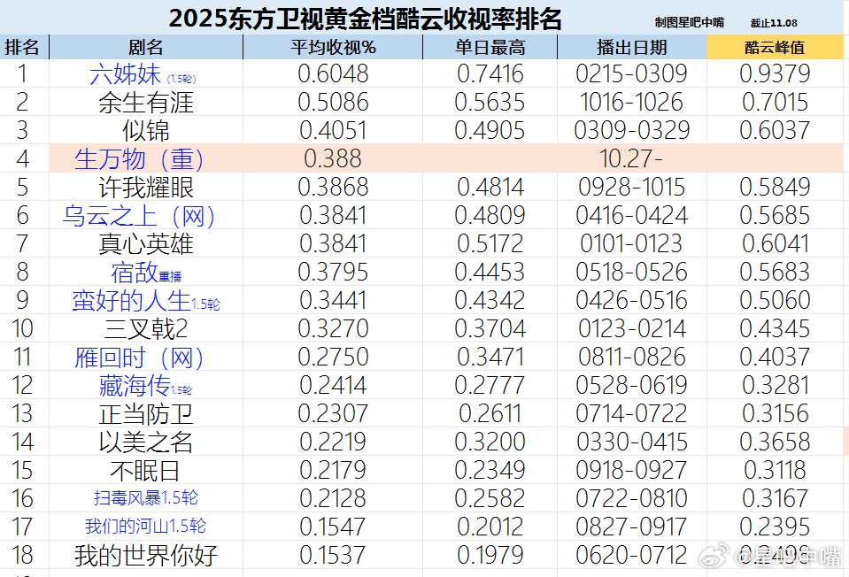 云合 11月8日云合!《水龙吟》《暗河传》集均已经破1000[鼓掌][鼓掌]!闹