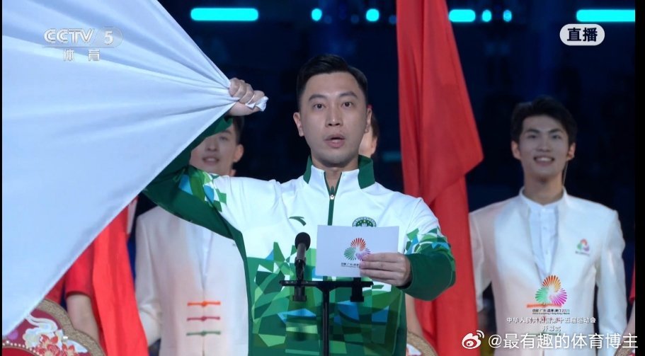 直播十五运开幕式湾区升明月,敬业的志愿者小哥始终保持八颗牙微笑