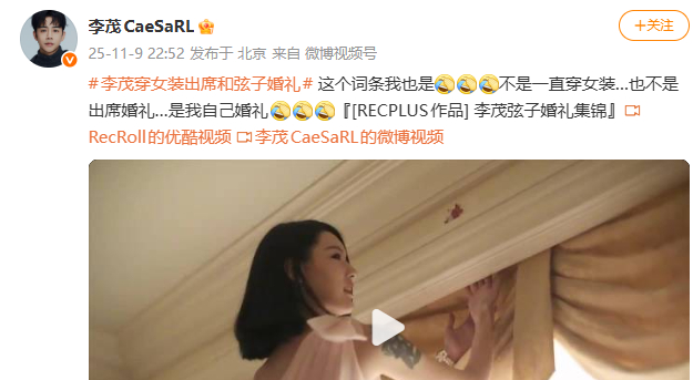 李茂回应穿女装出席和弦子婚礼李茂 不是一直穿女装也不是出席婚礼 哈哈哈哈哈哈哈