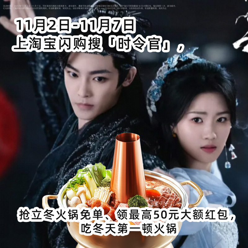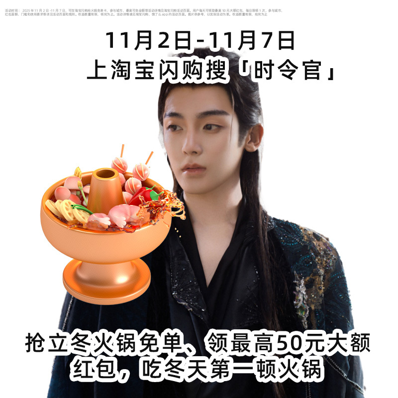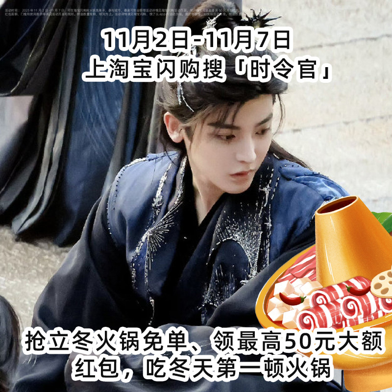 立冬跟侯明昊抢淘宝闪购火锅免单入青云太上头了!少年登云带风也带光,眉眼间都是故事。侯明昊这古风小生,一眼青云,一眼心动。他一笑,剧情升温;他一出场,心都跟着滚烫。火锅不能没有配菜,就像冬天不能没有这份心动。立冬上淘宝闪购吃火锅11月2日-11月7日上淘宝闪购搜「时令官」,抢火锅免单、领最高50元大额红包,和侯明昊一起成为这个冬天的热度担当!上淘宝闪购吃冬天第一顿火锅 侯明昊淘宝闪购双11福利大使