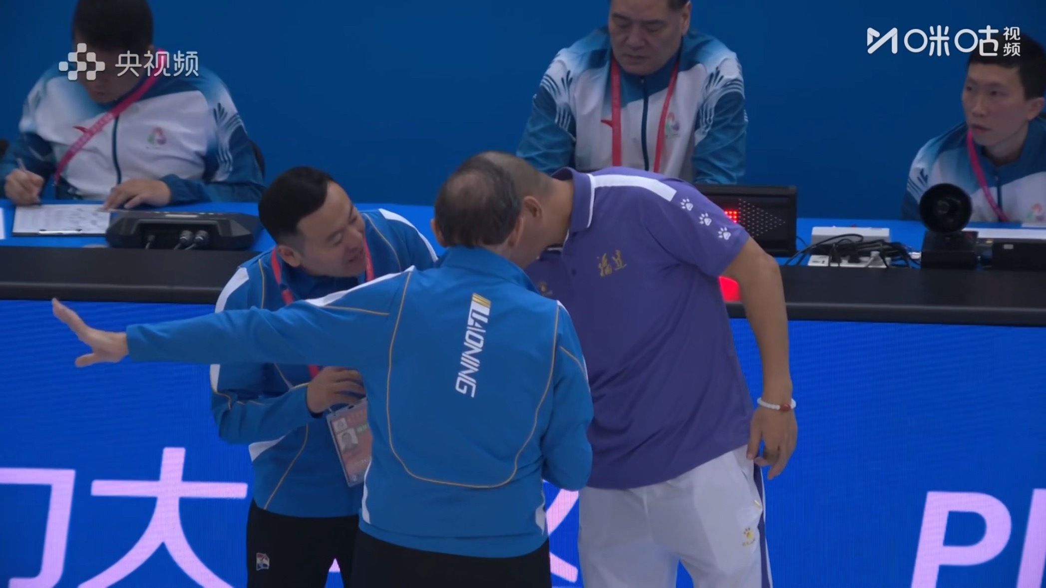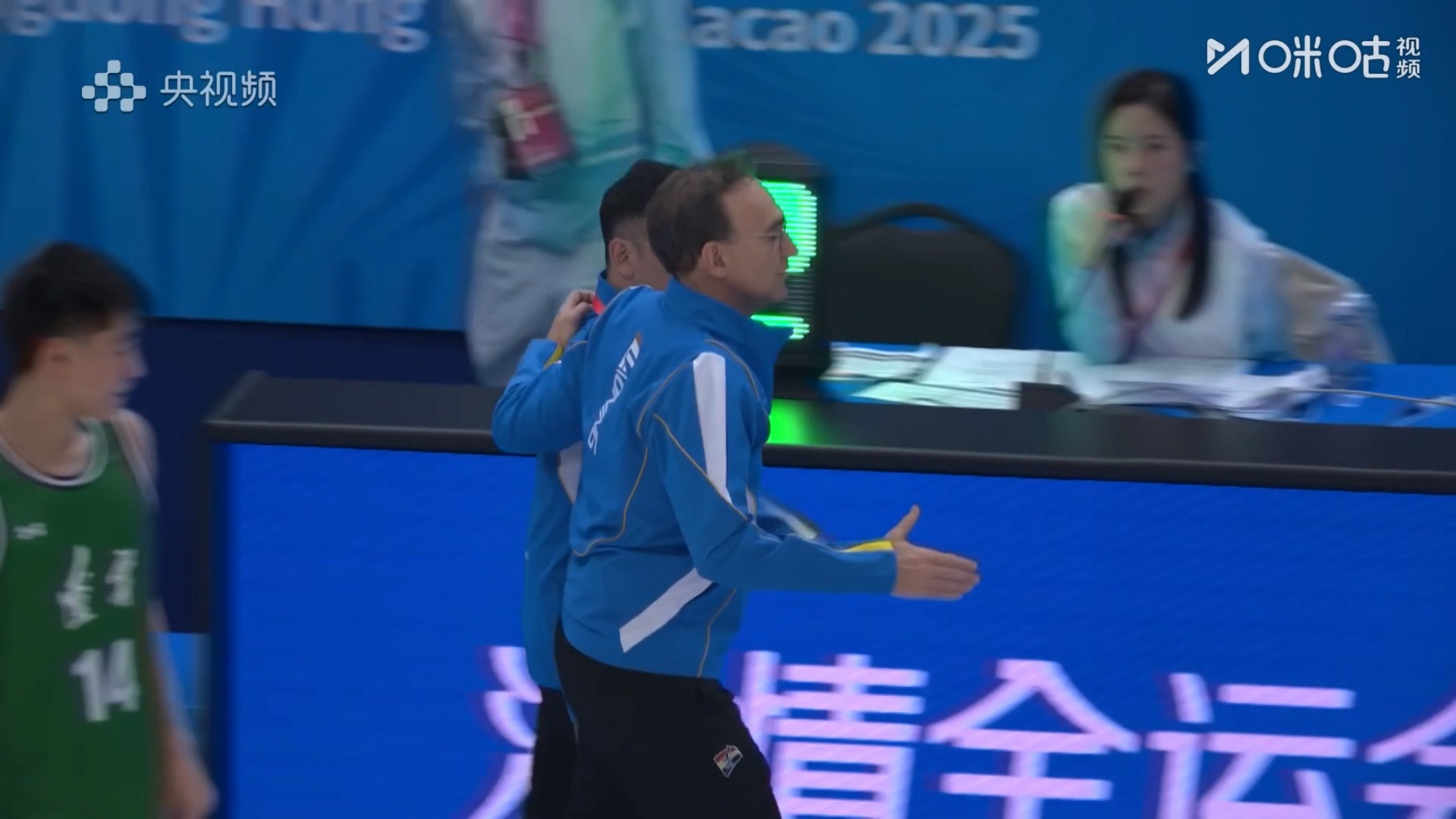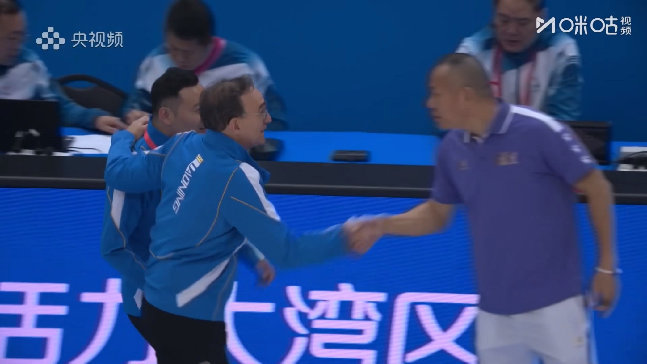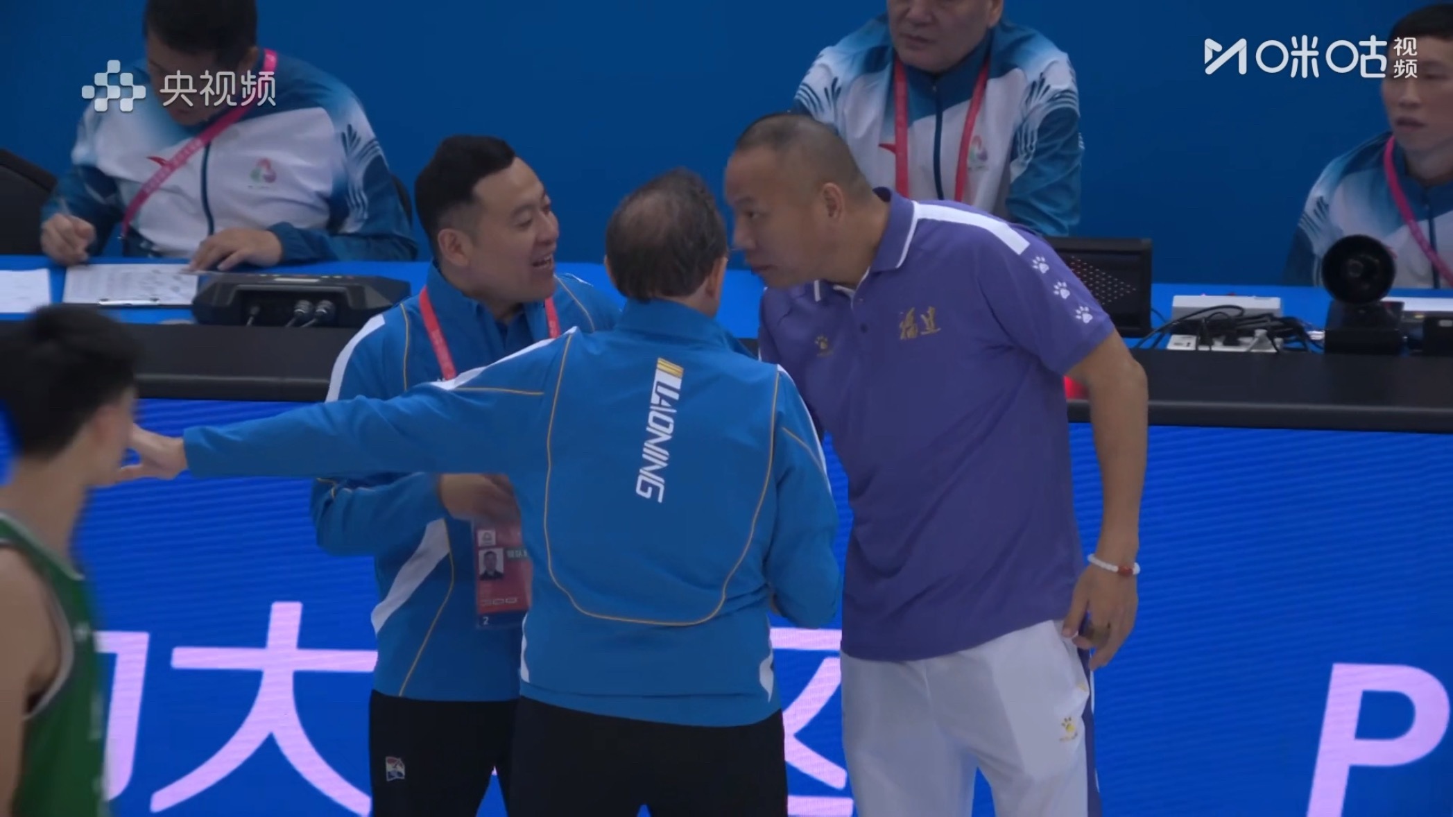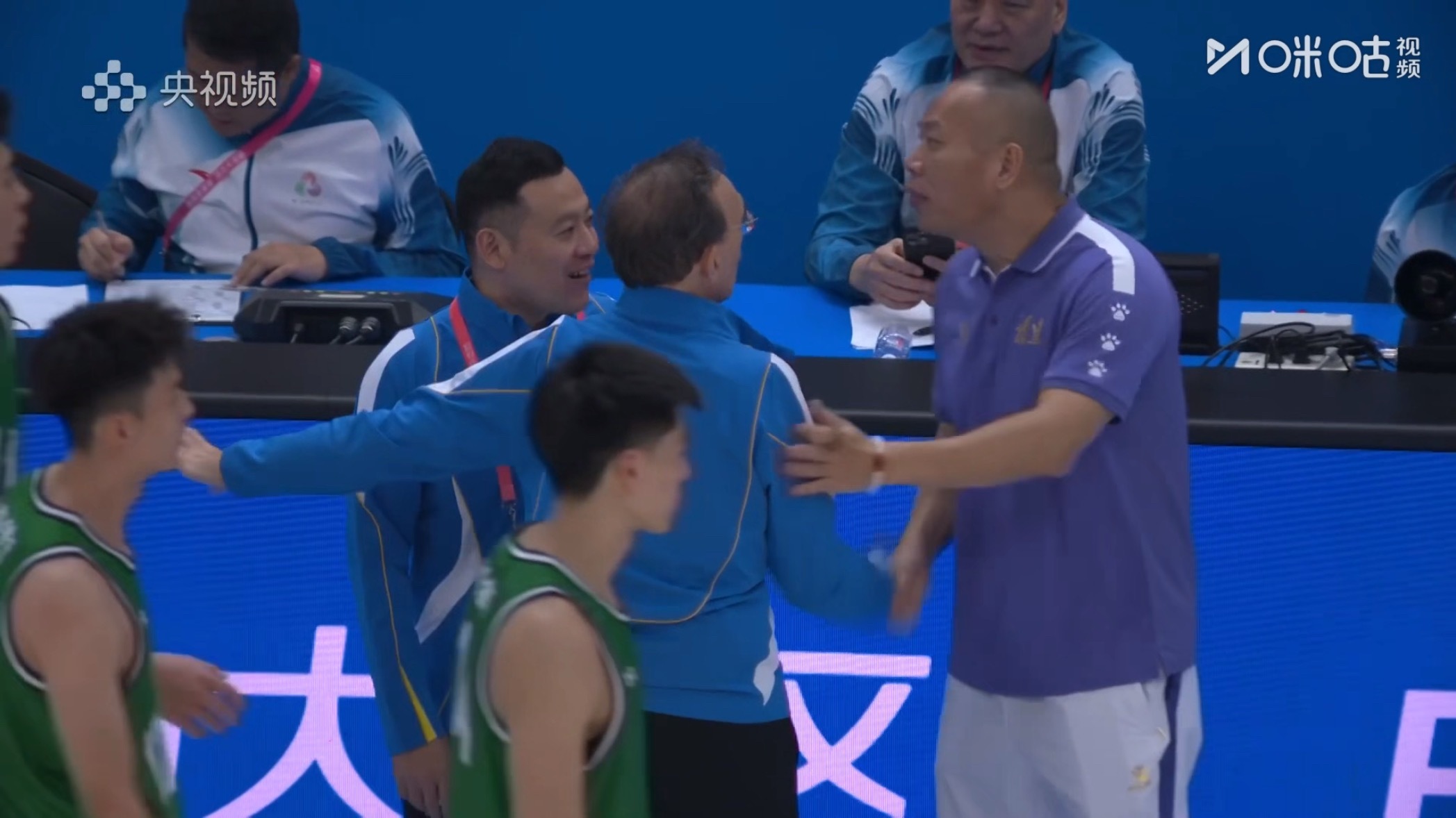 赛后主教练乌戈特意叫着翻译楠哥一同和福建队主教练沟通[赞]
