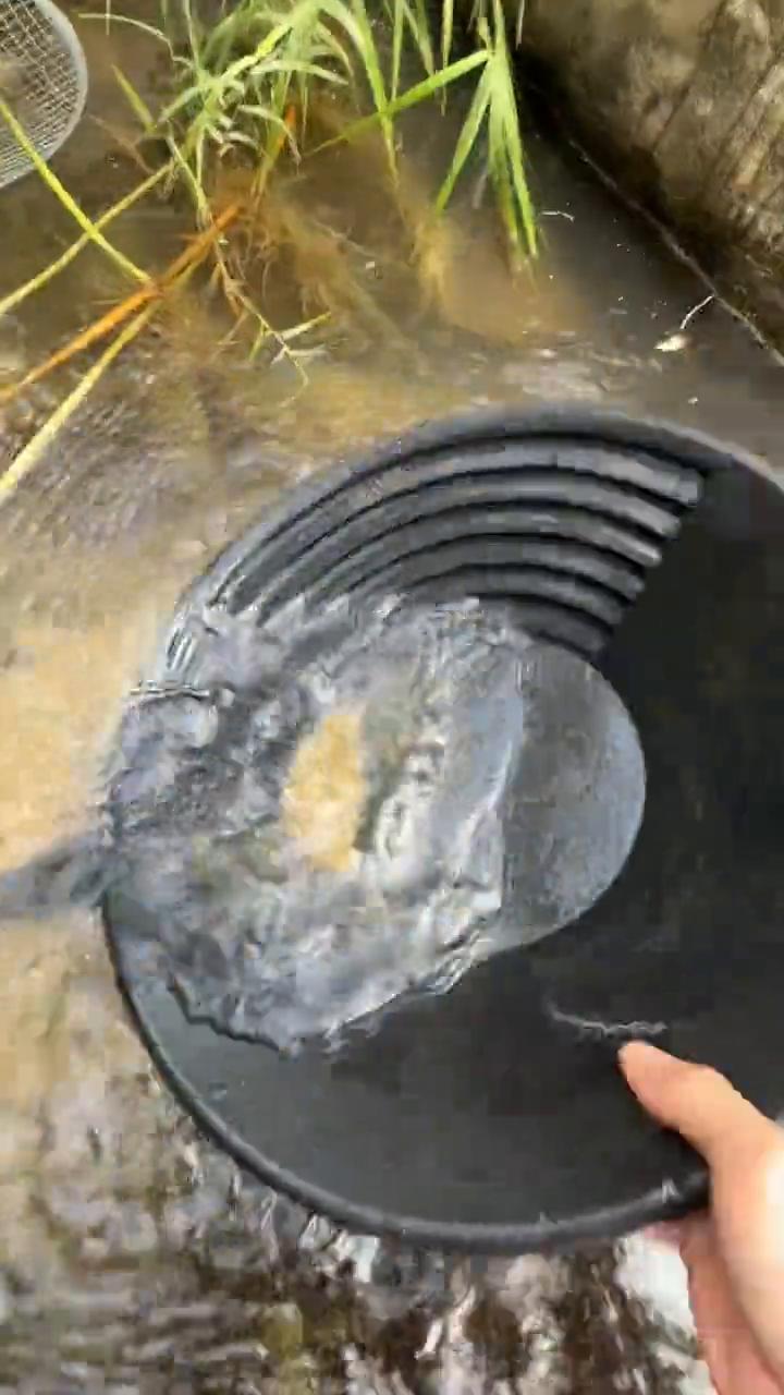 金天有粪。 今天真是淘粪的感觉,虽然缓流区有货,刚才第一盘就出了毛毛金,但是骚味的确是难受。不知道是哪位道友在这放大招,这颜色真是越想越上头,这个味道真的是受不了,直接一盘加速搞定它。 可以了,就搞这一盘料就可以了,要求不高,有个0.3克就行。兄弟们,玩的时候一定带一个这样的筛子,把大石头过滤掉,这样会快很多也好操作。摇到黑沙这一步慢一点就行,太快毛毛金会跑掉。还行,目测0.2克是有的。