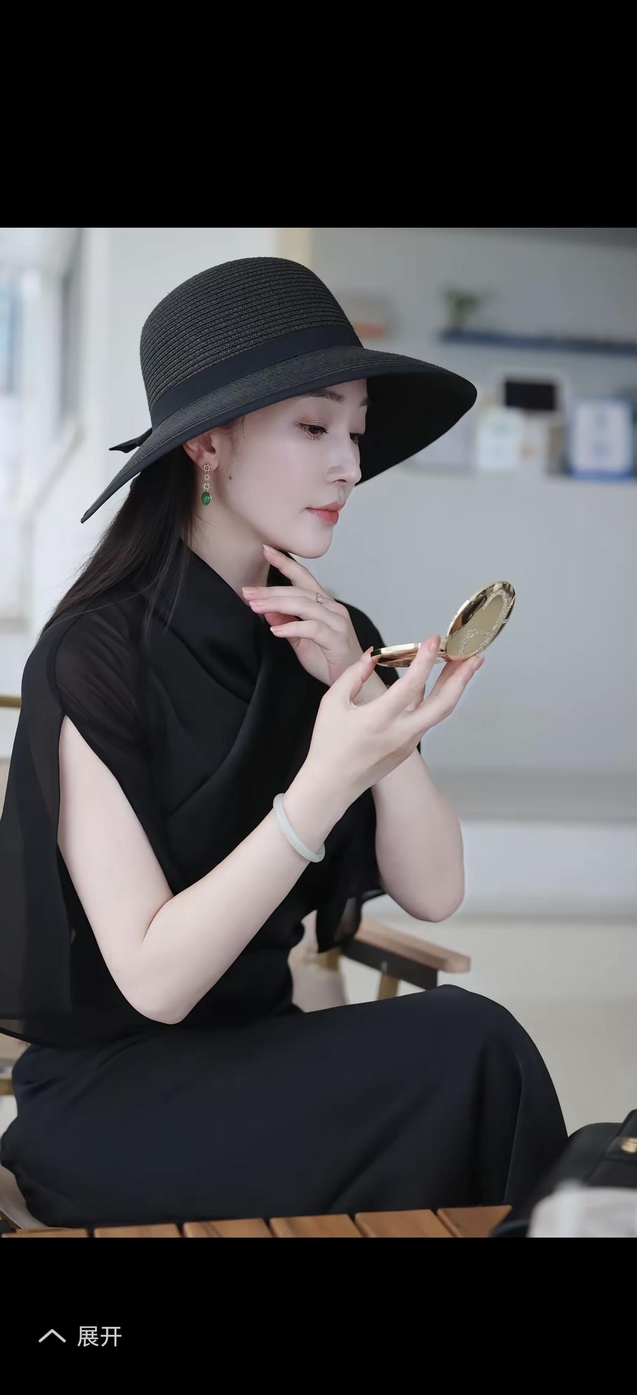 优雅的黑裙与宽檐帽,精致的妆容与配饰,尽显都市女性的时尚与自信。