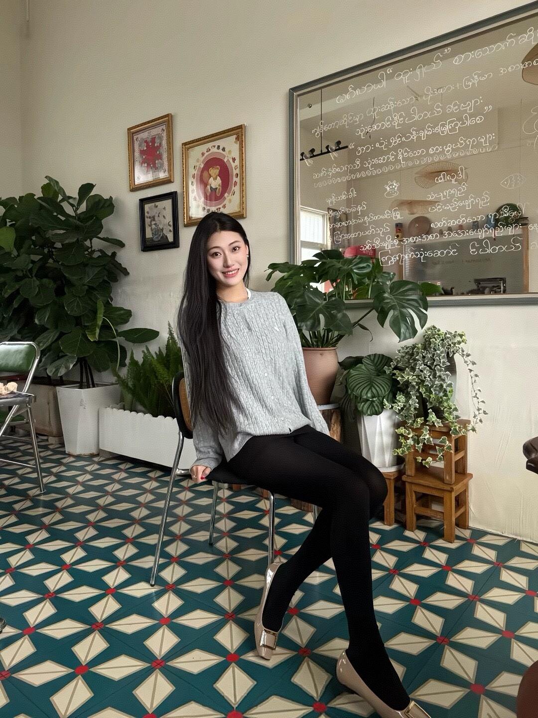 在绿植环绕的咖啡馆里,时尚少女与自然和谐共处。