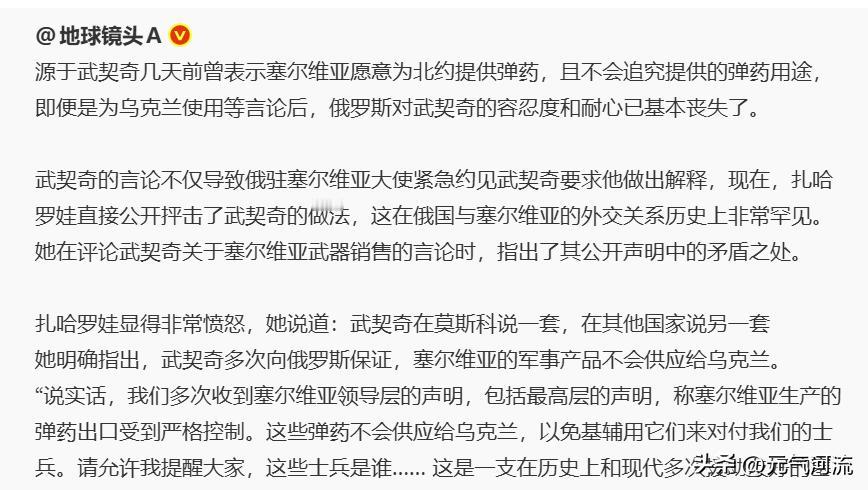 塞尔维亚站队北约惹怒俄国,地标建筑卖给美国,小国难做? 塞尔维亚总统武契奇上周说可以给北约提供武器,不管这些武器最后去哪,甚至可能给乌克兰。俄罗斯大使马上找他谈话,外交部发言人也公开批评他言行不一。这事发生在11月初。 随后塞尔维亚议会通过新法案,同意拆掉1999年被北约炸毁的旧大楼,让美国特朗普公司建豪华酒店。这个楼是当年北约轰炸的标志性地点,现在要彻底抹去痕迹。 二十年前北约轰炸塞尔维亚时,俄罗斯曾派部队冒险保护当地机场。现在塞尔维亚一边靠俄罗斯支持,一边又向西方倾斜。最近他们还在跟欧美谈基建贷款,但军事装备大部分还是俄罗斯产。 小国在大国间夹缝生存,选择任何一边都要付出代价。