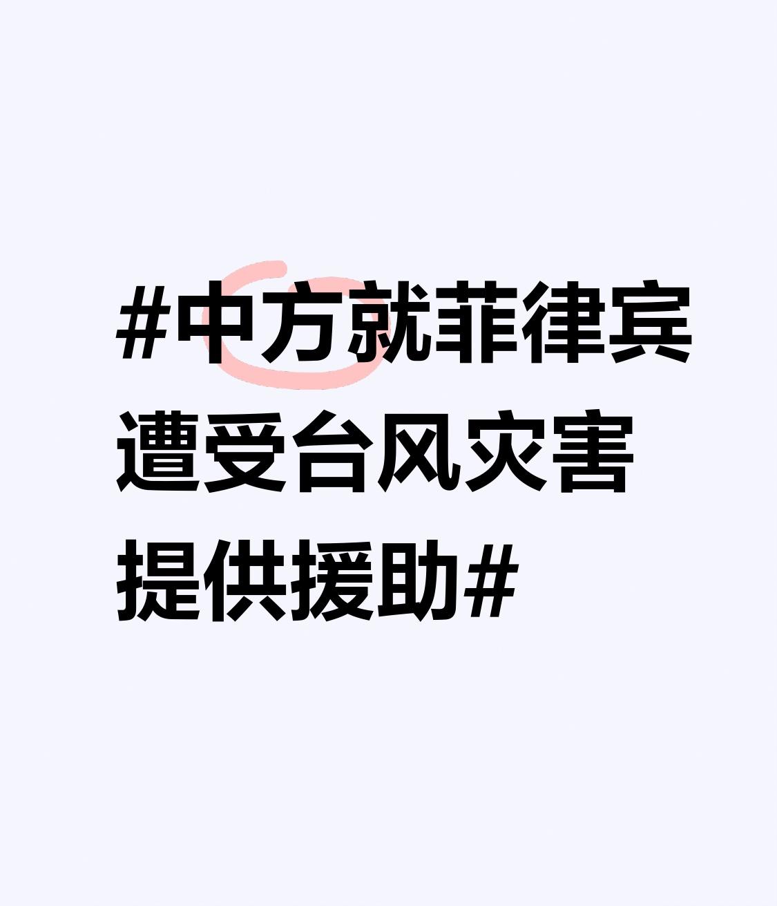 中方就菲律宾遭受台风灾害提供援助 最近菲律宾多地因台风灾害遭受重大损失,人员伤亡和财产损失都很严重。中方展现出了大国担当,出于人道主义和对菲人民的友好情谊,向菲人民提供现汇和紧急物资援助。 灾情发生后,中国有关地方省份、在菲中资企业、华人华侨第一时间就伸出援手。11月11日外交部发言人也证实了中方已提供援助。这不仅体现了中方的人道主义精神,也有助于两国友好关系的发展。希望菲律宾受灾民众能早日克服困难,重建家园。