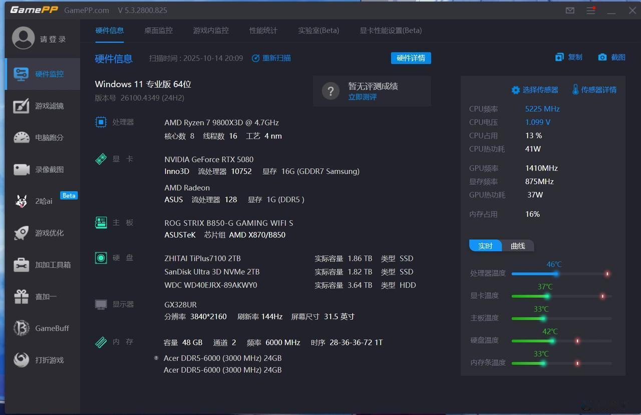 9800X3D其实一样是会积热的 不懂为什么这么多人说不积热,bios默认,烤鸡89度,摸冷头热都不热,和以前一点区别都没有,都9000系了还是这种情况,服啦。买之前搜一了一大堆都说不积热,真是信了你们的邪。散热分体水冷单CPU 360冷排,全铜的冷头,硅脂7921。 当然了,我也有个哥们儿上一套5800X用风冷玩3A就80度出头,这一套9800X3D也是风冷,玩同一个3A才70度以内,只要不影响玩游戏就好,也不用太焦虑。
