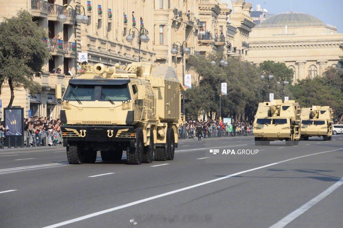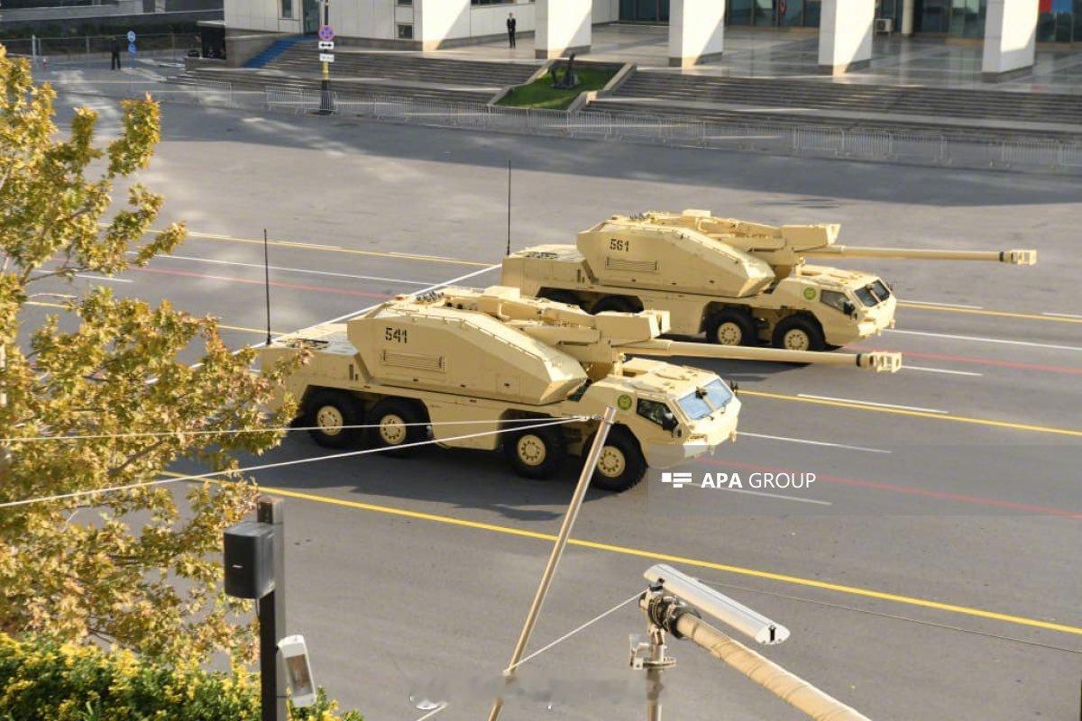 阿塞拜疆首都巴库举行纳卡胜利日阅兵式,纪念第二次纳戈尔诺-卡拉巴赫战争胜利五周年。阿塞拜疆在阅兵式上展示了一系列新型车辆和系统。其中一些带有捷克的设计元素。据报道,阿塞拜疆已通过隶属于捷克斯洛伐克集团母公司的斯洛伐克公司,订购了多达 70 门捷克制造的 155 毫米/L45 DITA 自行榴弹炮,这些榴弹炮由捷克剑神军团公司制造。有趣的是,与乌克兰DITA榴弹炮不同,这些火炮已经配备了加长炮塔,最初用于演示样炮。很可能新的装弹系统已经完全研发完成。(图1,图2,图3)阿塞拜疆军火库中的另一款新型榴弹炮是斯洛伐克的 155 毫米/L52 Nora-B52 NG 型榴弹炮,已订购 48 门。这些车辆采用捷克太脱拉Force 8x8 底盘——这进一步证明了这些底盘是高质量的,在世界各地都很受欢迎。(图4,图5)除此之外,2017 年经以色列交付给阿塞拜疆的捷克 152 毫米/L37 Dana-M1M 榴弹炮和 122 毫米 RM-70M1 多管火箭炮系统也参加了阅兵式。(图6)阅兵式上还展示了🇮🇱以色列制造的 PULS 多管火箭炮系统,该系统基于太脱拉Force 6x6 底盘,配备了用于发射不同直径和射程火箭/导弹的吊舱。(图7,图8,图9,图10)此次还展示了基于 太脱拉Force 6x6 底盘和 Puma L2 Long 装甲驾驶室打造的新型国产“维京”近程防空系统。“维京”的驾驶舱和上层建筑两侧都装有雷达,炮塔上装备有一门不知名的火炮、便携式防空导弹、一挺 .50 口径机枪和烟雾弹发射器。(图11,图12)最后一辆参加阅兵式的捷克制造的车辆是现代化改装的 ZSU-23-4 石勒喀河自行高炮,其现代化改装主要由以色列公司通过捷克斯洛伐克集团完成。例如换装了新型发动机、COAPS-L 火控系统和便携式防空导弹系统。(图13)