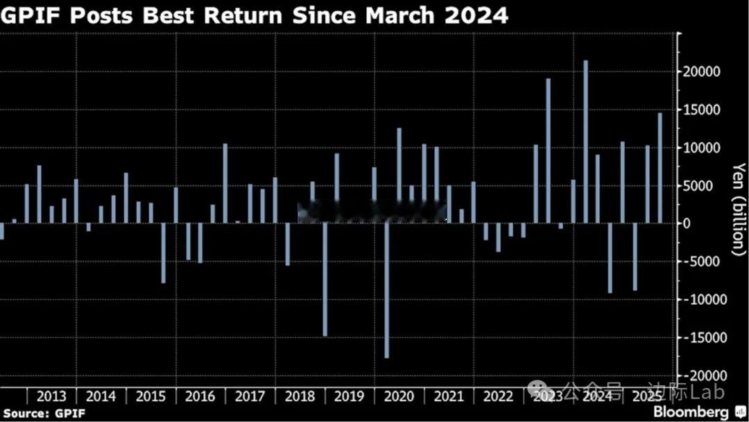 在全球股市上涨和日元贬值的共同作用下,日本政府养老金投资基金(GPIF)在截至9月的季度内录得14.447万亿日元的投资收益,回报率达5.52%,为2024年3月季度以来的最佳表现,推动总资产增至277.6万亿日元。具体来看,其国内股票投资回报率高达11.0%,但由于基准国债收益率上行22个基点,国内债券部分录得1.4%的亏损。海外资产方面,日元兑美元汇率近2.7%的贬值,带动外国股票与债券分别实现了9.8%和3.0%的正收益。来源:Bloomberg