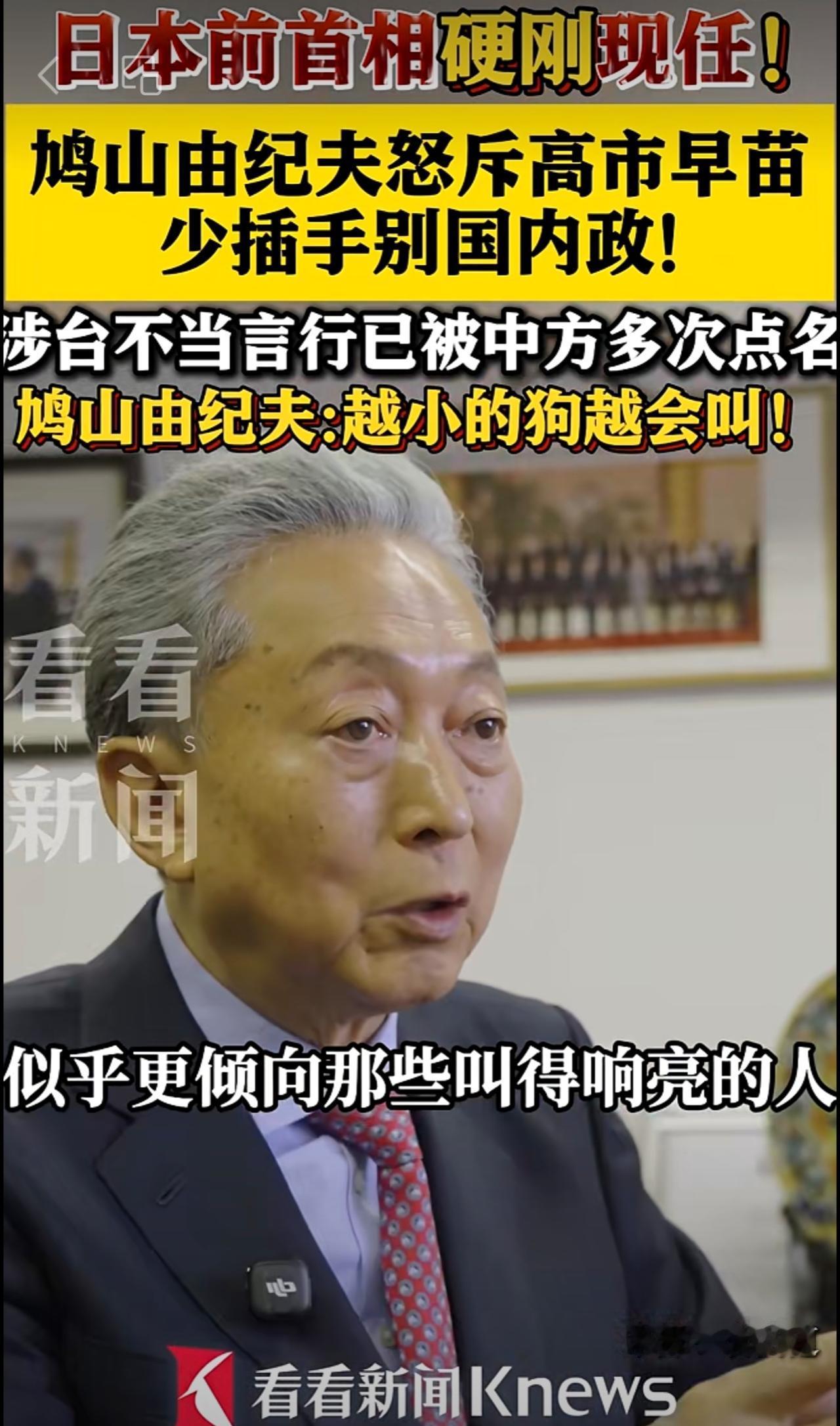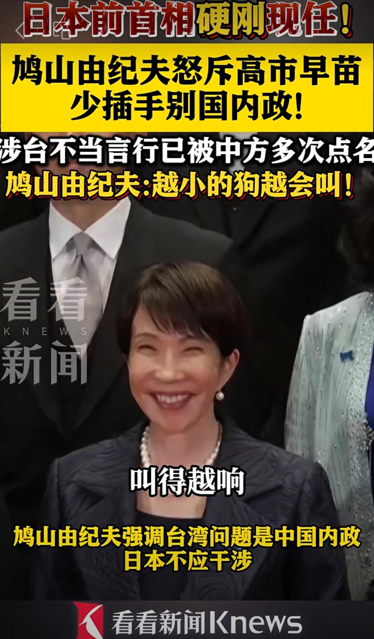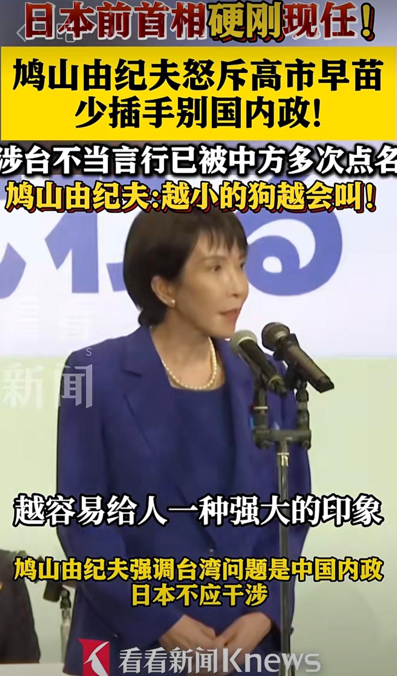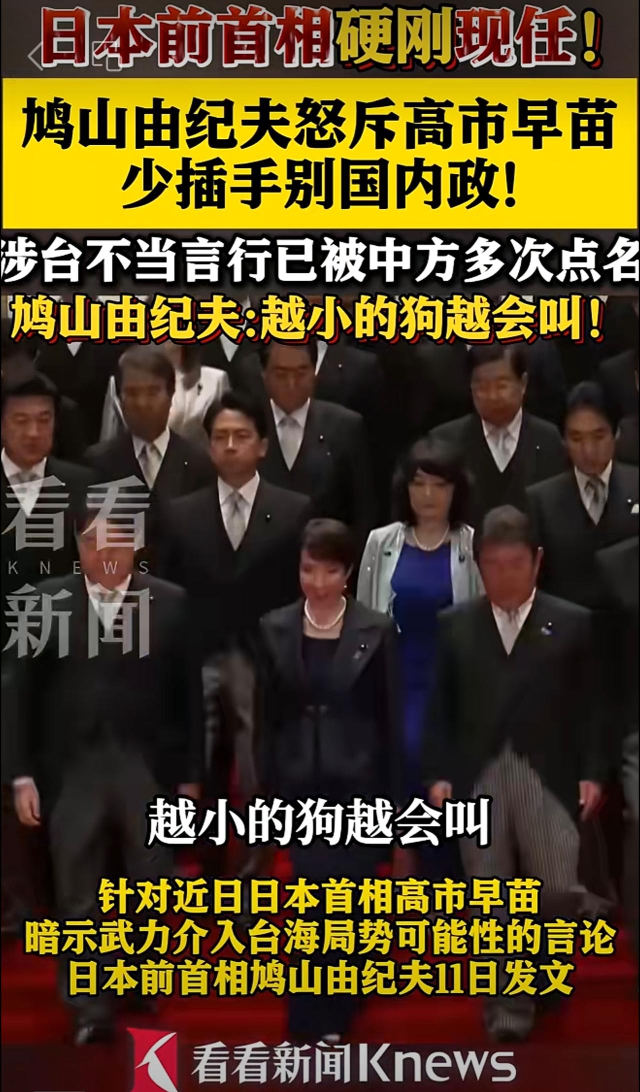 日本前首相硬刚现任!鸠山由纪夫怒斥高市早苗 :少插手别国内政!高市早苗涉台言论已被中方多次点名日本台湾 点击关注@看看新闻Knews