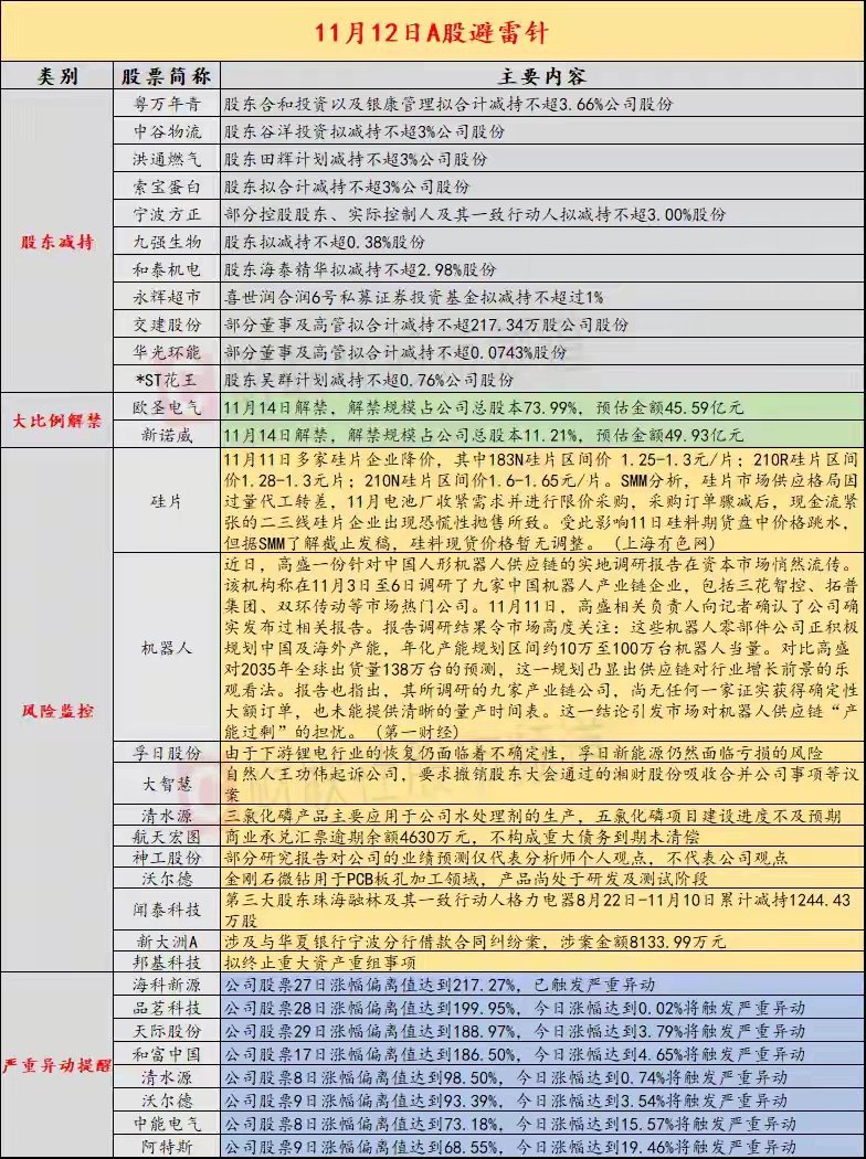 11月12日值得关注的市场热门板块及个股方向:1. 培育钻石关注个股:四方达、惠
