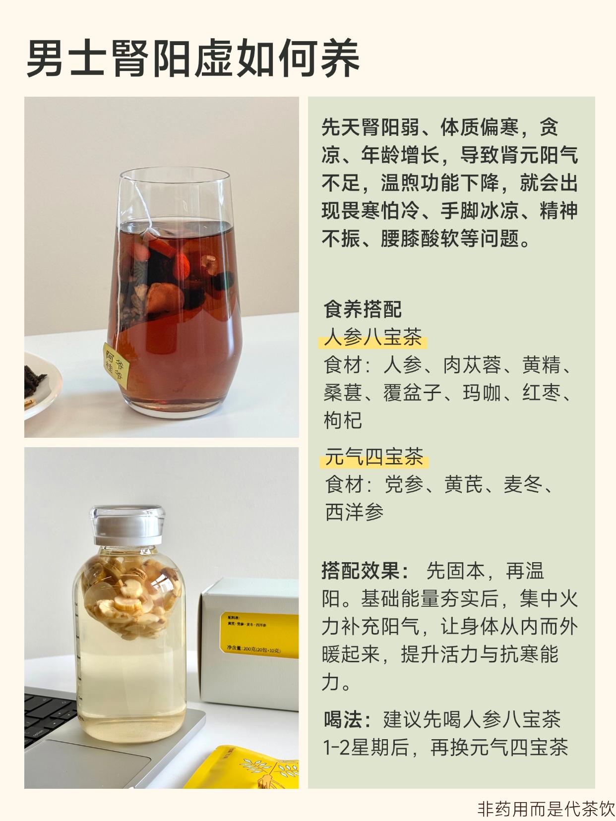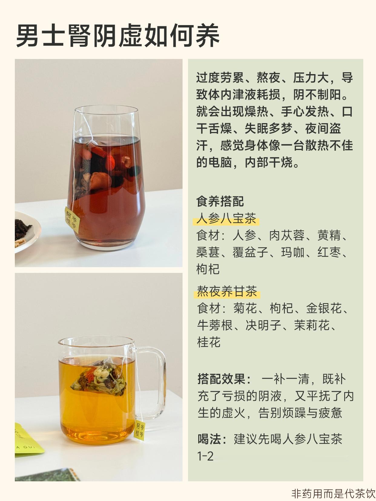 肾喜欢的3种养生茶搭配,分清体质食养。俗话说:“春养肝,秋养肾”。 秋季阳气渐收,阴气渐长, 正是为身体储蓄能量、涵养肾jing的黄金时期。 肾为“先天之本”,主水、纳气、藏精... 因此腎虚会给身体带来不同的影响 比如男生肾阴虚,易燥[火R]火旺 肾阳虚则易累、怕冷... 所以肾养要针对不同体质,从根源上温和调理。 - 非药用而是代茶饮