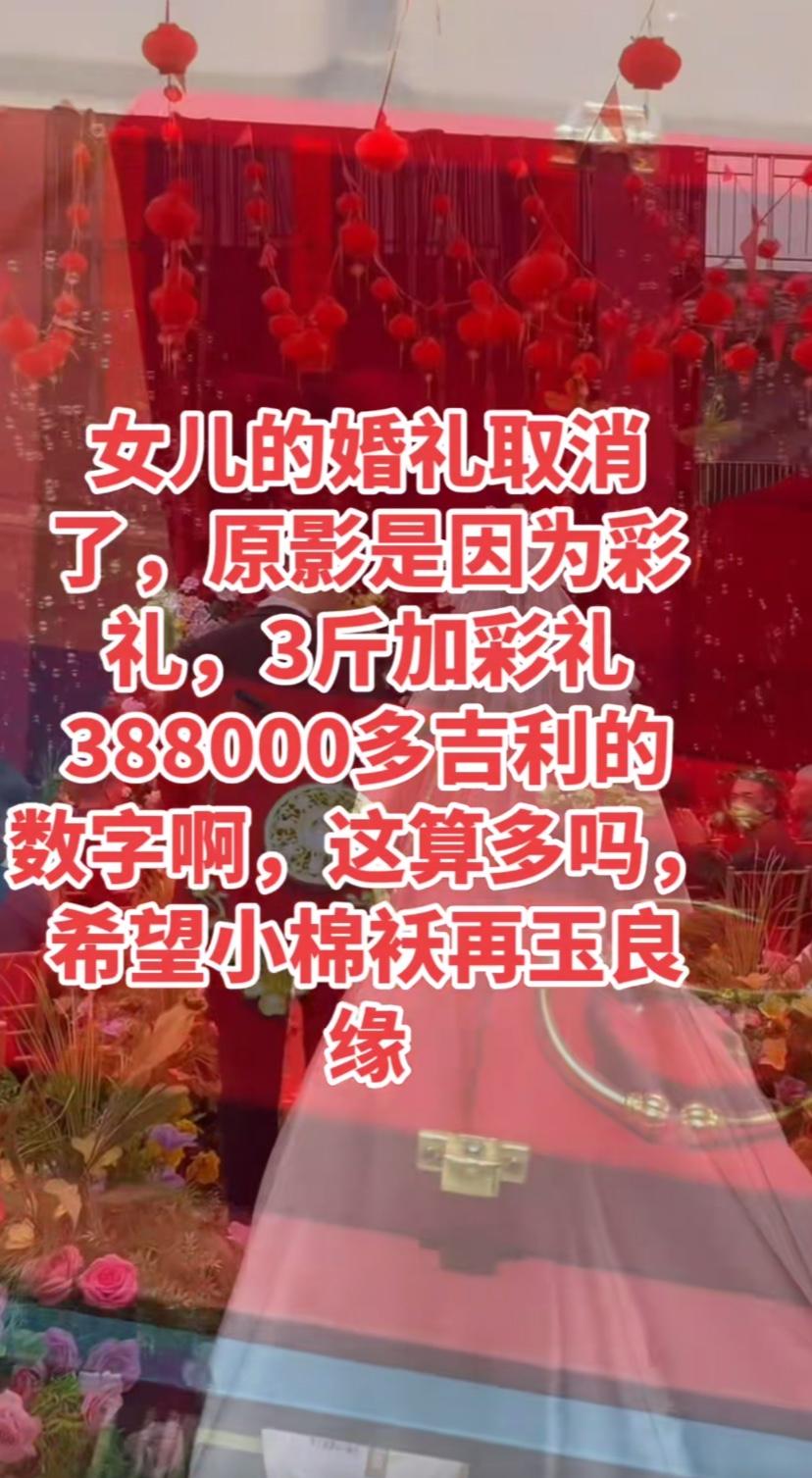 莉姐发视频,女儿的婚礼没办成取消了,因为彩礼搞崩了。她问大家,3金加彩礼一共38.8万,数字多吉利,这还多吗? 这么多了,看得出女方要的还理直气壮,仅仅彩礼这多么多,那结婚得多少万,好像个个想嫁个大款,几十万就像小钱一样!