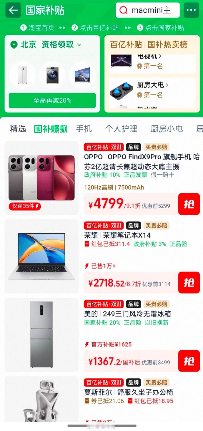 【最后一波双十一数码福利】天猫这次活动很直接,“叠buff”式省钱攻略来了。买电子产品,上天猫搜“国家补贴数码”,先领150元手机9折券,再抢400元数码券,iPhone 17、iPad 10等产品,都能直接砍价。还可以参加百亿补贴,以及国家补贴下:OPPO Find X9 Pro国补后4799元,比原价省500;苹果MacBook Pro政补后4212元,直接立减1600+;现在加购还能锁定最后库存,价保到11.13买贵秒退,冲! (来源:哇科技)