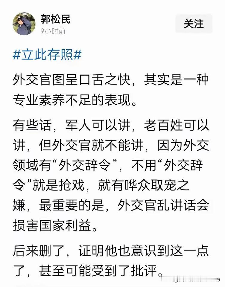 按照郭大师的话术,是不是也可以这样说高市早苗? 一国首相图呈口舌之快,其实是一种专业素养不足的表现。 有些话,军人可以讲,老百姓可以讲,但首相就不能讲,因为外交领域有“外交辞令”,不用“外交辞令”就是抢戏,就有哗众取宠之嫌,最重要的是,首相乱讲话会损害国家利益。 后来怂了,证明她也意识到这一点了,甚至可能受到了批评。