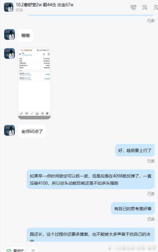 再次恭喜我们小莹朋友,顺利减仓后稳稳落袋11516美金外界的声音可以听,但不能淹