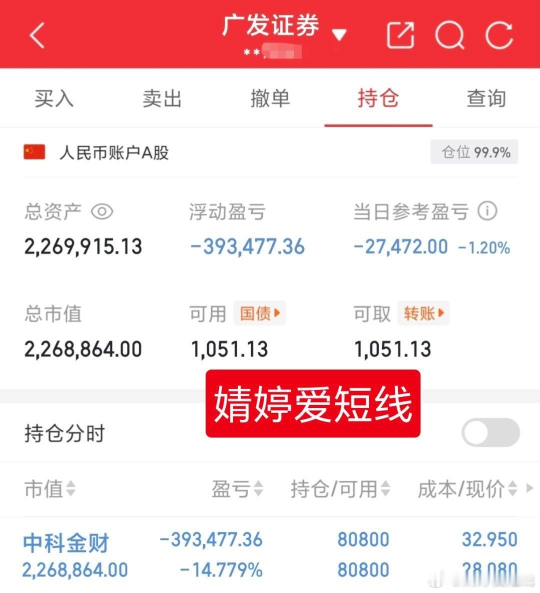 今天已经探底婧婷所说点位,明天不出意外就是开启反弹时刻。30万本金实盘记录(第341天)目前资金:2269915.13元今日持有:中科金财我会把每天实盘记录下来,我相信实盘肯定一直往前冲,希望各位股友支持婧婷!点赞富一生,评论888票票长虹!特别声明:这只是我个人的操作记录,不作为任何投资建议,更不是劝你们跟买!股市有风险,投资需谨慎!!!🙏🙏🙏