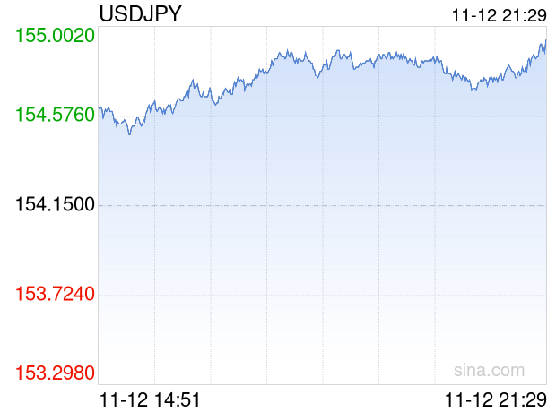 新浪外汇消息2025年11月12日,截至21时29分,外汇市场上美元兑日元汇率突破1美元兑换154.9400日元。涨幅为0.5125%