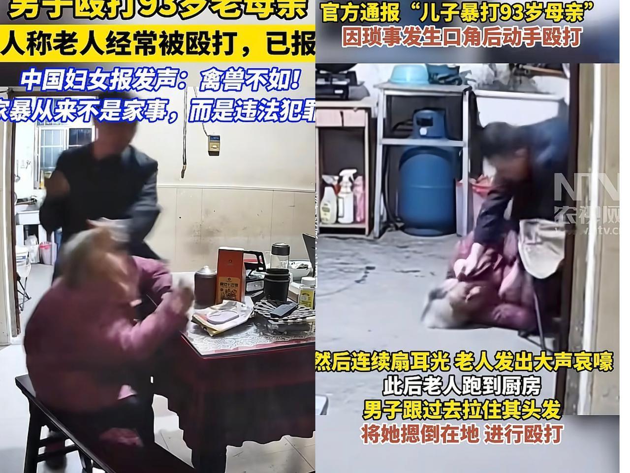 泯灭良知!90多岁老母亲被儿子暴打事件最新进展,男子已被处理查办中 真的被气到发抖!90多岁的老人饿了想吃饭,换来的竟是亲生儿子的拳打脚踢,躲进厨房都难逃被按倒在地的厄运。 更让人愤怒的是,居然还有人拿"未经他人苦,莫劝他人善"来为施暴者洗白。照顾老人辛苦不假,但这绝不是你泯灭人性、殴打母亲的理由。生养之恩大于天,连乌鸦都知反哺,这人却连禽兽都不如。 长期虐待老人的恶行,早已突破人伦底线,更是触碰了法律红线。施暴者被查办是咎由自取,可老人心中的伤痕难以愈合。 孝道从来不是空洞的口号,而是刻在骨子里的良知。你觉得该如何杜绝此类虐老事件?对于这种不孝子,又该如何严惩才能以儆效尤?来评论区说说你的看法!