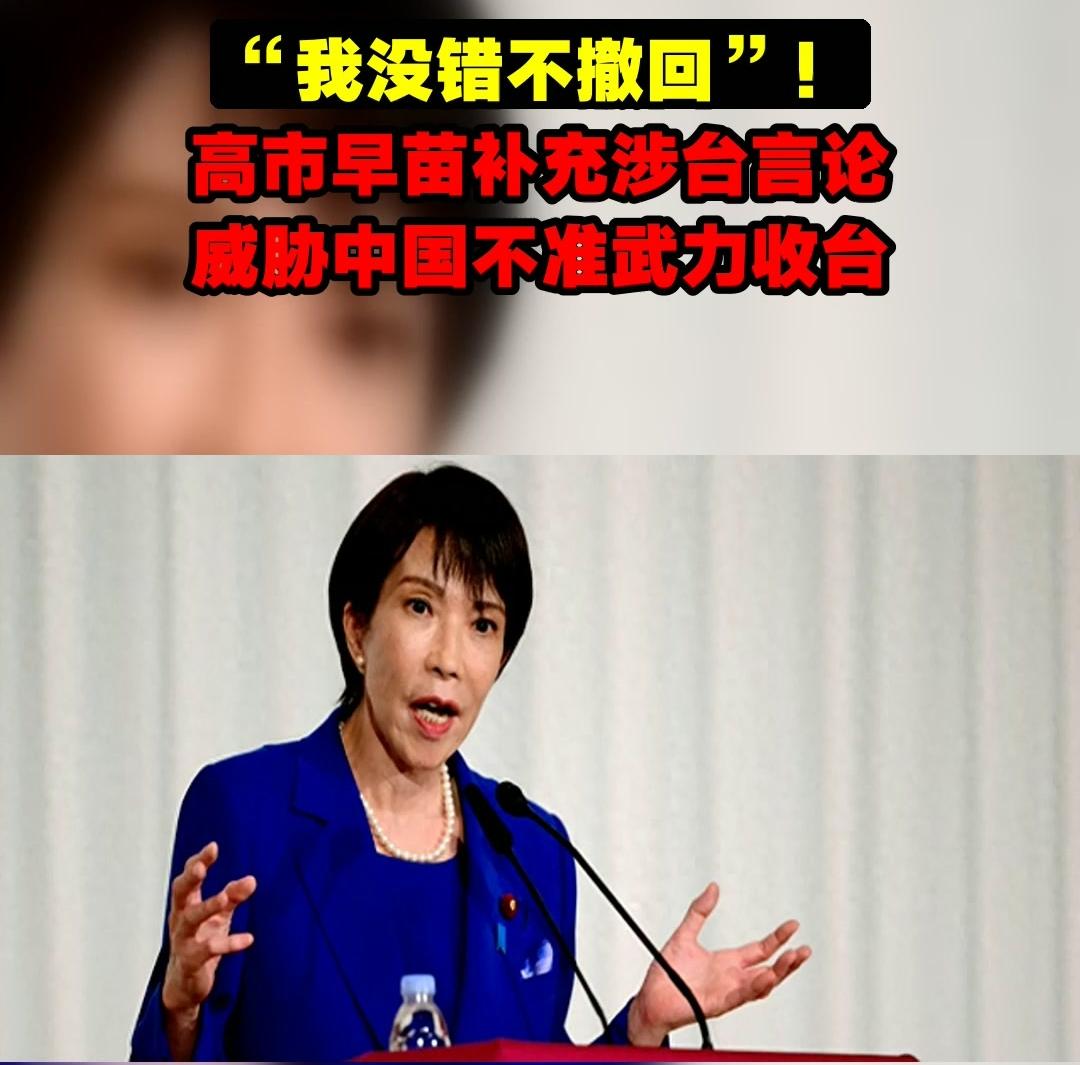必须把小日本的嚣张气焰打下去。高市这个安倍幽灵附体的右翼首相,刚刚上台就张牙舞爪,又跪舔美国,又挑衅龙国,彻底暴露出让日本军国主义死灰复燃的本色。虽然小日本绝不敢跟龙国直接动武,但通过不停地搞小动作,打乱龙国的发展和统一节奏,从而浑水摸鱼,达到洗白自己侵略历史及复辟军国主义的不可告人的目的,对此绝龙国不能掉以轻心,必须予以有力回击。 从安倍晋三时“台海有事就是日本有事”,到高市“存亡危机事态”,明摆着是要武力介入台海,这是开了极坏的头。这个冒出来的脏头不砍掉,对龙哥统一台湾大业是极大的隐患。 小日本不是喜欢挑事么?那龙国就如她所愿也给她找点事:⑴在联大继续要求讨论琉球群岛主权归属问题,告诉日本:琉球归属日本法理上还没有定论。⑵联合二战战胜国确认龙国在日本的驻军权,龙国派兵进驻日本有法理依据,告诉日本:只要龙国乐意就可挥兵东瀛。⑶抗议、谴责小日本不会收敛,直接明了地给诏书,告诉日本:胆敢武力介入台海,就是龙国灭其之日。 总之,就是明明白白地告诉小日本,在台海搅局龙国一定会让其有来无回。日首相声称用威慑力量解决台海问题 日本搅局台海 中国必将统一台湾 (图片来自网络)