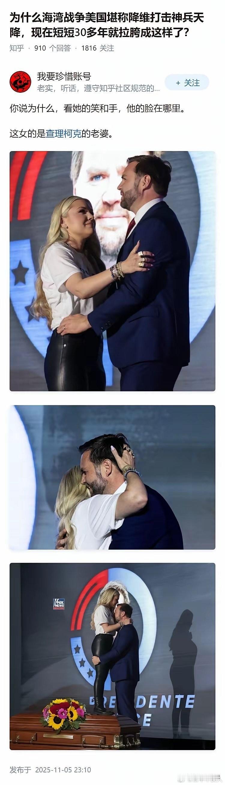 下面是科克的棺木?人都还在这呢 要继承他的遗志,不是遗孀。查理.科克遇刺