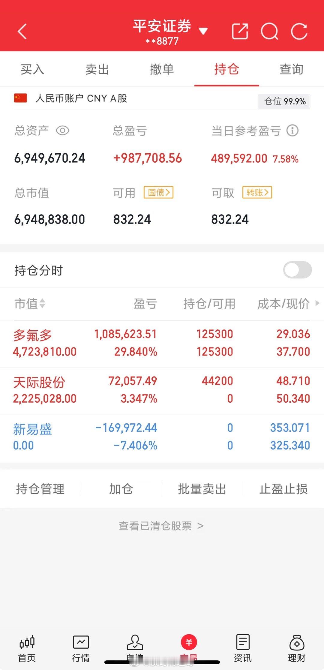 今天是11月13号星期四!超哥(100w)翻倍操作之旅的第432天;持仓变更;新易盛止损了,出来的仓位进了$天际股份 sz002759$ ,$多氟多 sz002407$ 继续格局!特别声明:我开实盘的目的主要是为了记录我对A股走势的思考和研判,并用于记录我自己的操作笔记,是我积累股票投资知识和反省操作失误的一个平台,绝不是读者朋友买卖股票的依据和理由,不具备投资建议,据此操作,需自行承担投资后果,股市有风险,投资需谨慎!!!看到的朋友点个赞,扣一波“888”支持超哥,我会每天坚持发出自己的操作来!兄弟们,点赞富三代,评论美一生!!