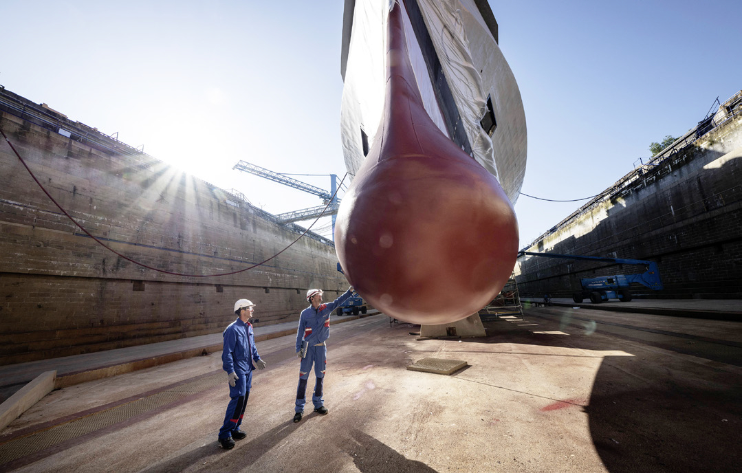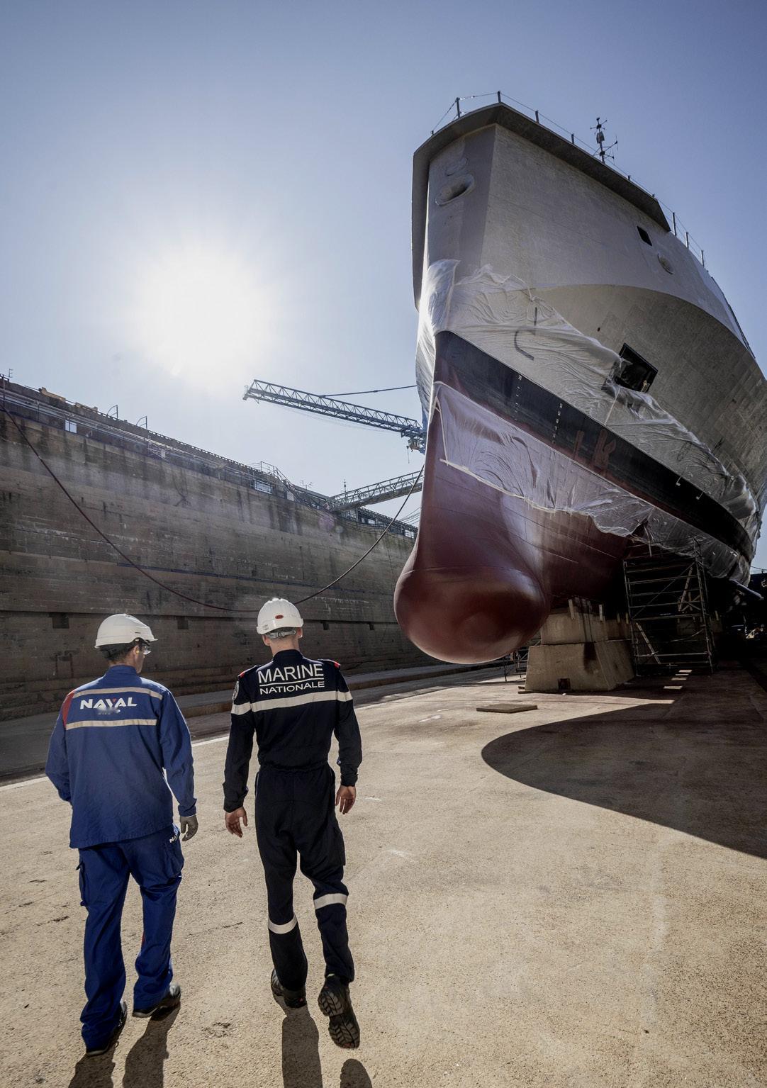 法国海军“干预防御护卫舰”(FDI)首舰“罗纳克海军上将”号(D660)在洛里昂船厂3号干船坞内。