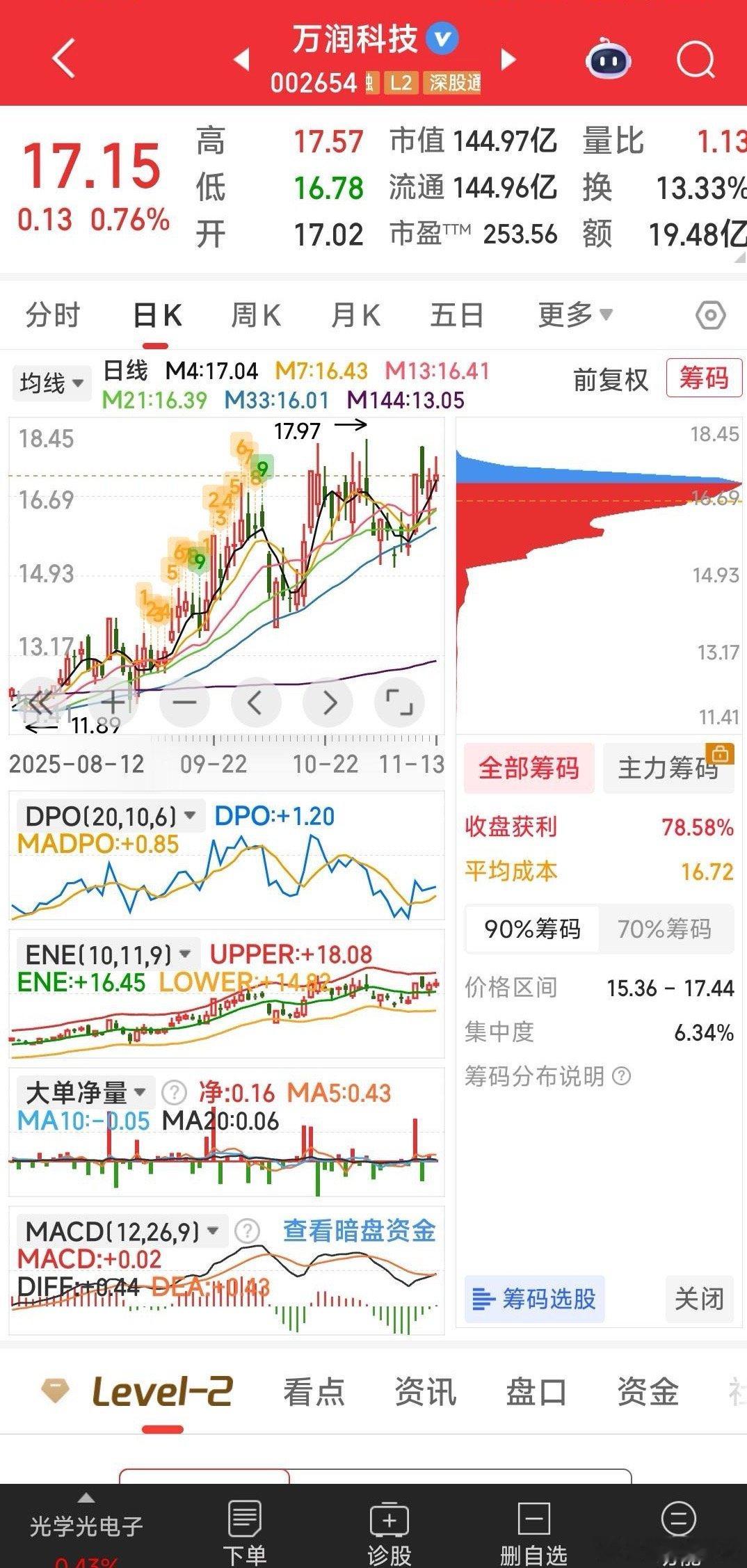 【建议万润科技平手出局】17.05入的万润科技,走式不强,可17.16元保本暂出,不玩弱票。标准股份可继续关注跟踪,我们说看九天,今天是笫四天,还有5天。