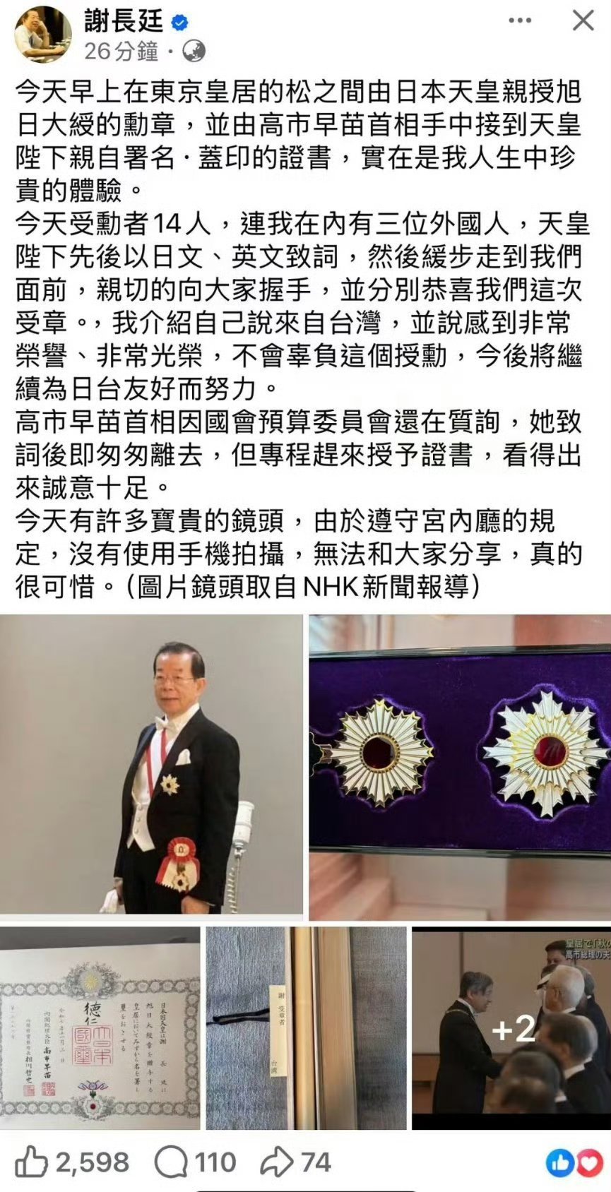 日本天皇亲自给“台北驻日代表”谢长廷授勋是几个意思?