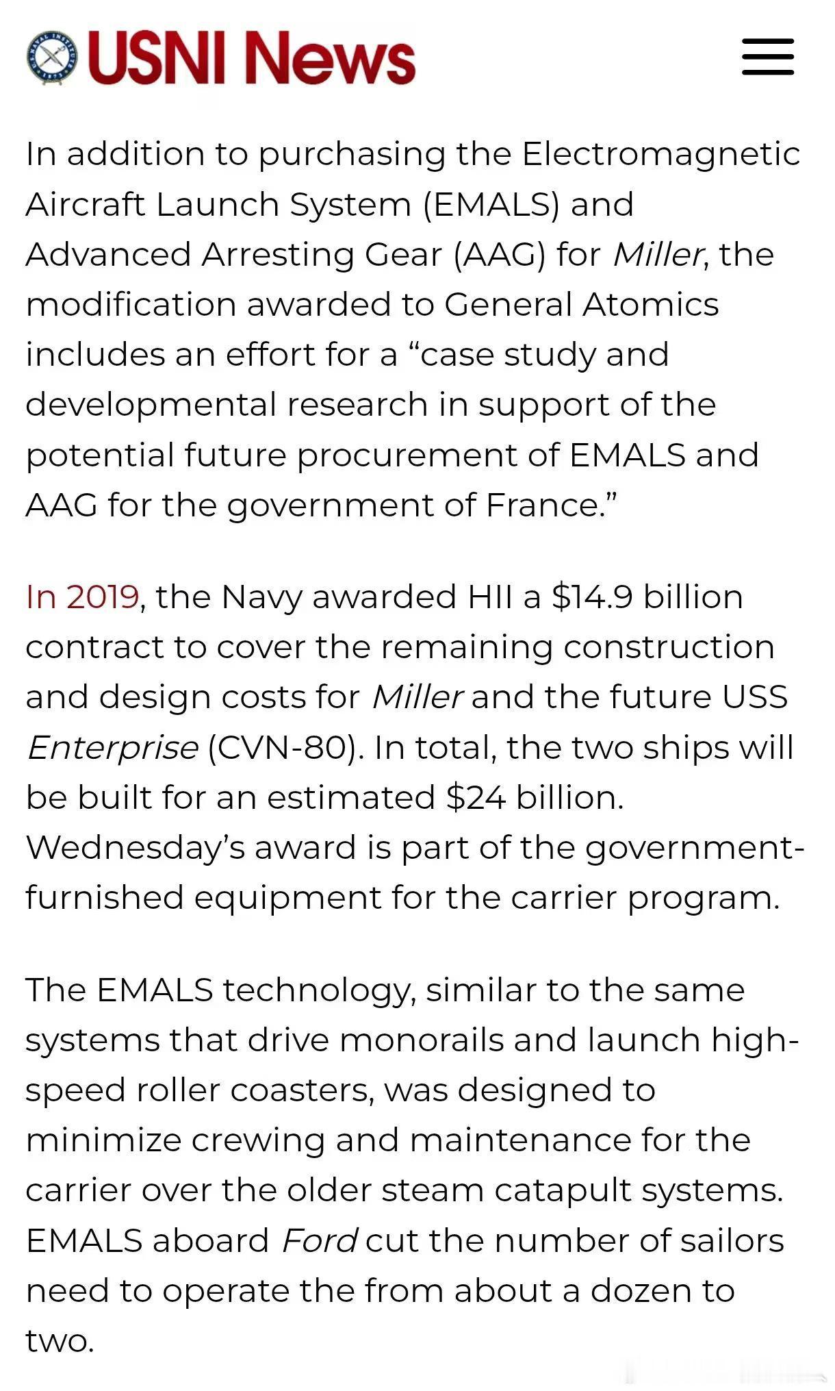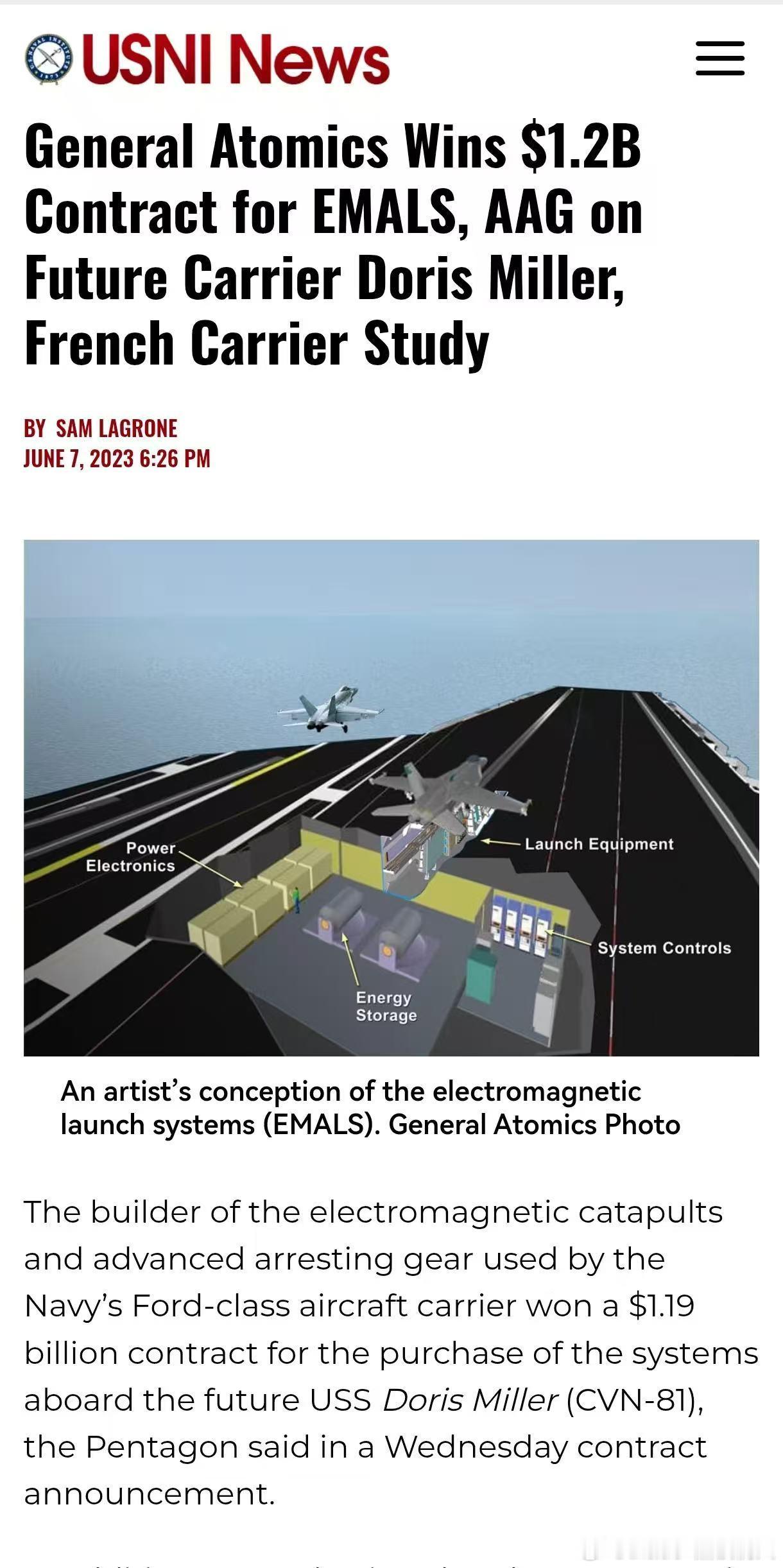 最近新闻联播放了咱们国家航母上的电磁弹射技术,其实美国前几年也有新闻讲投入资金研