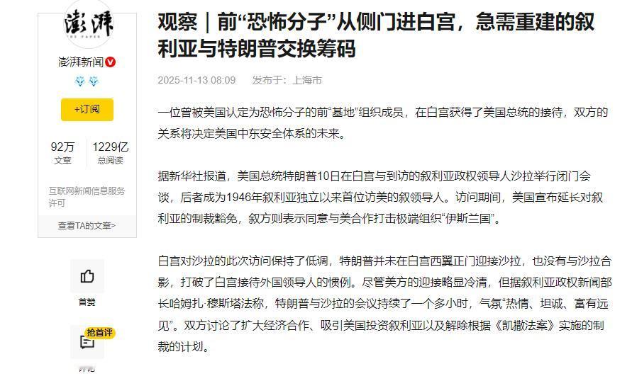 叙利亚突发大动作! 叙利亚居然敲定要加入美国牵头的国际联盟,一起打“伊斯兰国”(ISIS)。这急转弯不光周边国家没想到,加沙的巴勒斯坦人心里更沉了,本就快熬不下去的日子,怕是要更难了。 谁都知道,叙利亚和美国以前是死对头,制裁、对着干就没停过,怎么突然凑一块儿了?说到底还是ISIS闹得太凶。今年6月大马士革东边的教堂,极端分子趁周日大家祈祷的时候,又开枪又引爆,25个人当场没了,几十人受伤,这是叙利亚局势稳点后最狠的一次袭击。 看着教堂里的碎渣子和家属哭天抢地的样子,叙利亚政府心里门儿清,单靠自己扛不住极端分子反扑,急需外人搭把手。 而美国早就在叙利亚安了钉子,现在驻在那儿的美军快2000人了,之前就放话要一直待着。一边是急着要反恐火力的叙利亚,一边是想在中东站稳脚跟的美国,这事儿看着突然,其实是各取所需。叙利亚要的是能拦住ISIS的真招,美国则借这个机会把脚在中东扎得更稳,两边都算得明明白白。 可叙利亚这招“自保”,偏偏戳中了加沙的命门。现在加沙早就弹尽粮绝,援助通道一会儿开一会儿关,停火的事儿谈来谈去没个准信,这一切的关键,全看美国怎么对以色列说话,只要美国松口压一压以色列,以色列才可能在停火和给援助上松点儿劲。 如今叙利亚跟美国走近,等于给美国在中东多安排了个活儿,反而能腾出手来偏帮以色列。更糟的是,阿拉伯国家本来还敢公开替加沙说句话,现在见美国和叙利亚凑一块儿,怕是得掂量掂量自己的立场,纷纷闭上嘴,加沙在外交上更没人帮了。 连救命的援助都可能被分走。国际联盟打ISIS得要弹药、要情报、要后勤,这些东西一往叙利亚挪,加沙那边救命的粮食、药品就更没谱了。联合国早喊着加沙缺几十亿美元的援助,现在美国心思被分走,那些等着救命的东西,更难运进去了。 当然叙利亚也没打算彻底跟美国绑死,就是先借联盟的力解决家门口的麻烦,对它来说,ISIS是眼前的豺狼,加沙是远在天边的事儿,先保自家老百姓安全才是最要紧的。可中东这地方牵一发而动全身,叙利亚和美国每走一步,最后都得落到加沙人身上。 最让人担心的是,以色列可能借着这个机会变本加厉。以前美国还会象征性喊两句“别太狠”,现在有了叙利亚这个新合作对象,对以色列的容忍度只会更高,说不定连表面功夫都省了,加沙那边的打击可能更重。 说到底,叙利亚这么选也是没办法,为了自家反恐保命。可中东这盘棋上,最苦的从来都是普通老百姓。大马士革教堂死的人、加沙难民营里的孩子,他们要的不是大国斗来斗去,就是能安安稳稳活下去。就看美国是不是真的想反恐,别拿这个当扩张的借口,不管是叙利亚的老百姓,还是加沙的孩子,都不该为大国的算计受委屈。
