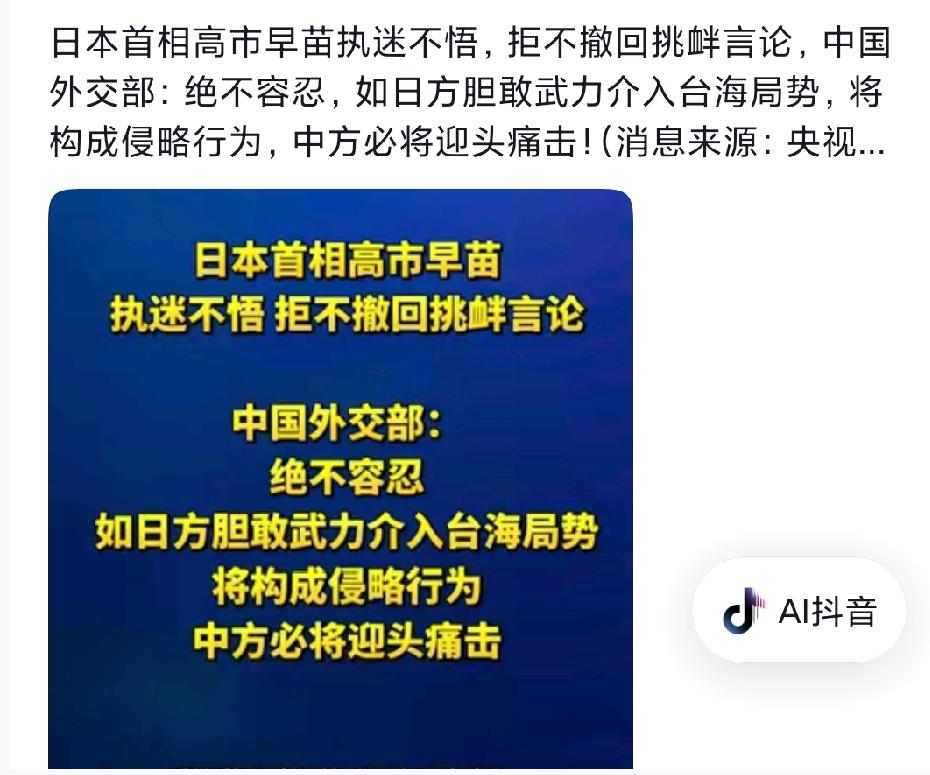 日本首相刚撂下狠话要把“熊猫外交官”赶走,结果转头就被自己阵营的人当场泼冷水!这一系列操作,剧情简直比日本电视剧还抓马。高市早苗刚上任没满一个月,就整出了两件不省心的事:先是悄悄去见台当局的那些政客,接着又明晃晃地把台湾问题和日本自身的安危扯到一起。更离谱的是,她竟然还让熊猫先给个说法,不然就把“熊猫外交官”给赶走。 结果这话刚说完,日本前首相鸠山由纪夫就直接开炮:“越小的狗越叫得凶。”立宪民主党更是直接站出来反对驱逐的提议,直言这么做只会让事情更糟。这么一看,日本政坛根本就不是铁板一块啊! 熊猫这边就更厉害,直接放出了攻击-11无人机的演训画面。这招可真够高明的,既亮了亮实力,又没把话说死。依我看啊,现在重点是得让日本民众清楚,跟着那些极端政客瞎掺和,只会把自己逼到绝路上。你们觉得,这熊猫“外交官”这波反击,能让日本民众醒悟吗? 高日早苗 高市早苗演技派