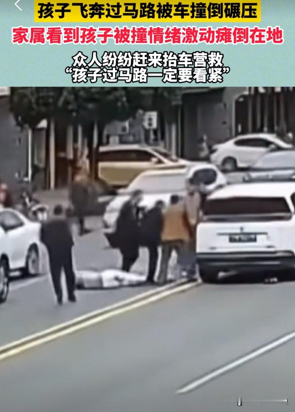 小男孩飞奔的横穿马路,被一辆小轿车撞倒并碾压! 马路对面的家长看到孩子被撞后,因为情绪激动直接晕倒。 路人看到这种情况,纷纷上前营救,幸亏孩子没有生命危险,但是多处骨折,也得在床上躺一两年了! 出门在外一定要看好孩子,警告他过马路的时候一定要看好车子,不然就找个有红绿灯的路口过马路,安全第一!儿童车祸 孩子过马路