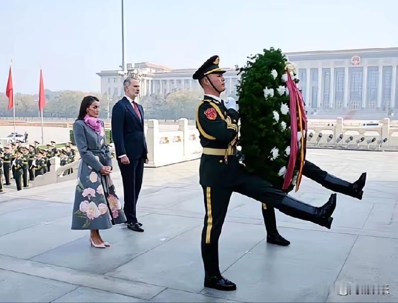 西班牙王后在北京一天换三套造型,一套比一套惊艳!11月12日,莱蒂齐亚王后陛下到北京第二天参加了多个活动,先是出席了为她与费利佩六世举行的欢迎仪式,一身灰色印花风衣造型尽显优雅美;然后向人民英雄纪念碑献花圈,不过还是风衣造型并没有换装。 白天期间,王后陛下还去了北京残联,一袭粉裙减龄又毫无违和感,也只有她能驾驭这个颜色,毕竟王后气质在那放着呢! 到了晚上,她又盛装亮相欢迎晚宴,这回并没有穿职业装也没有换私服,而是穿了高定礼服裙,白色与黑色拼接的款式,显高显瘦显贵气! 值得一提的是王后陛下的晚宴造型还换了发型,梳着偏分刘海,修饰精致五官,长发盘起来尽显干练又利落,关键气质卓绝!