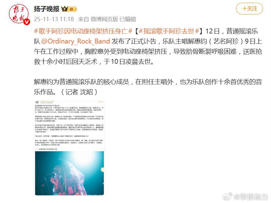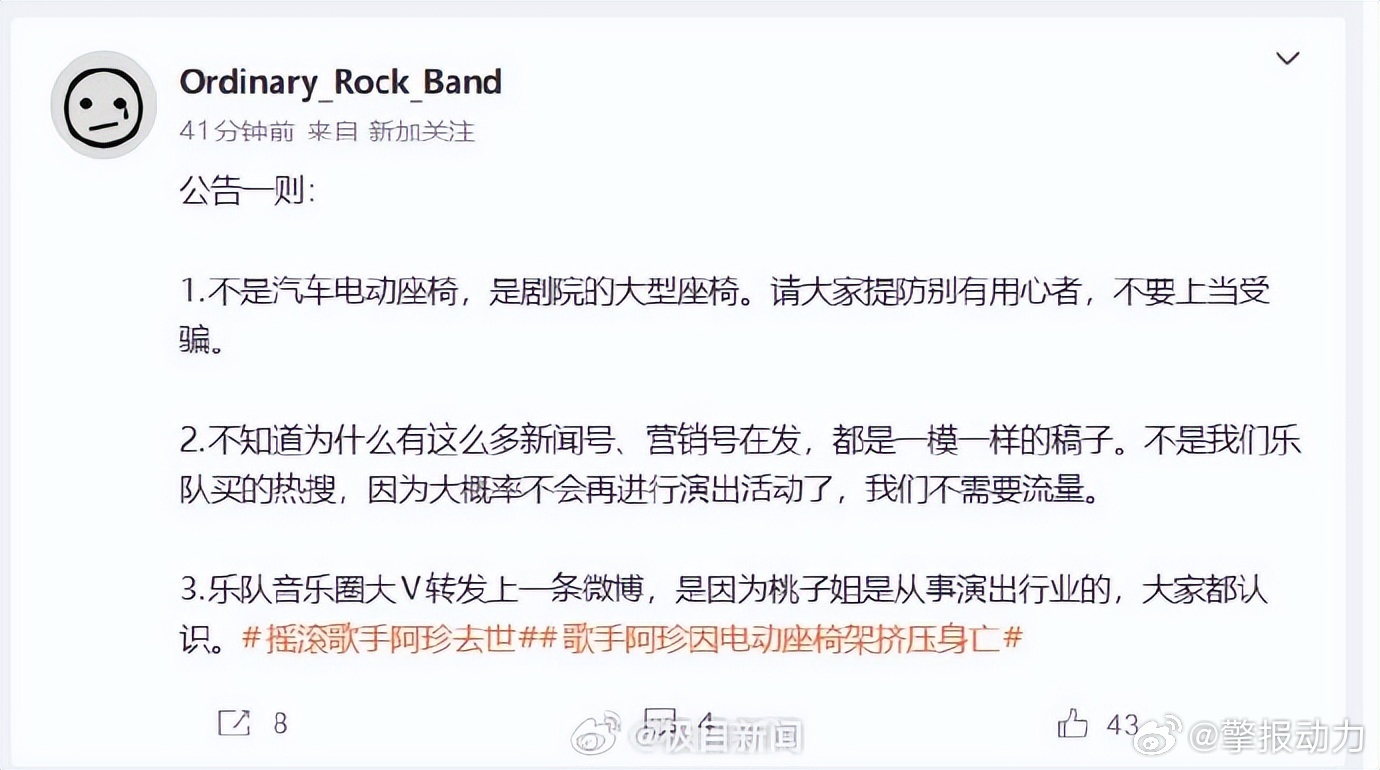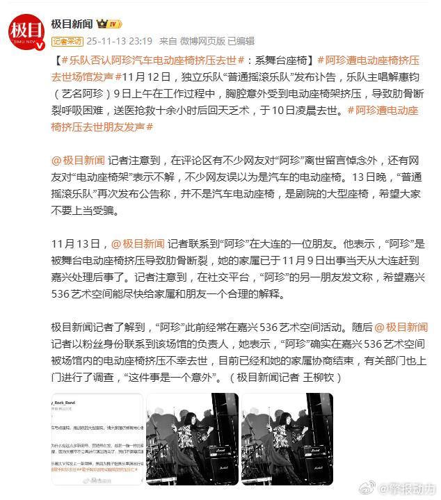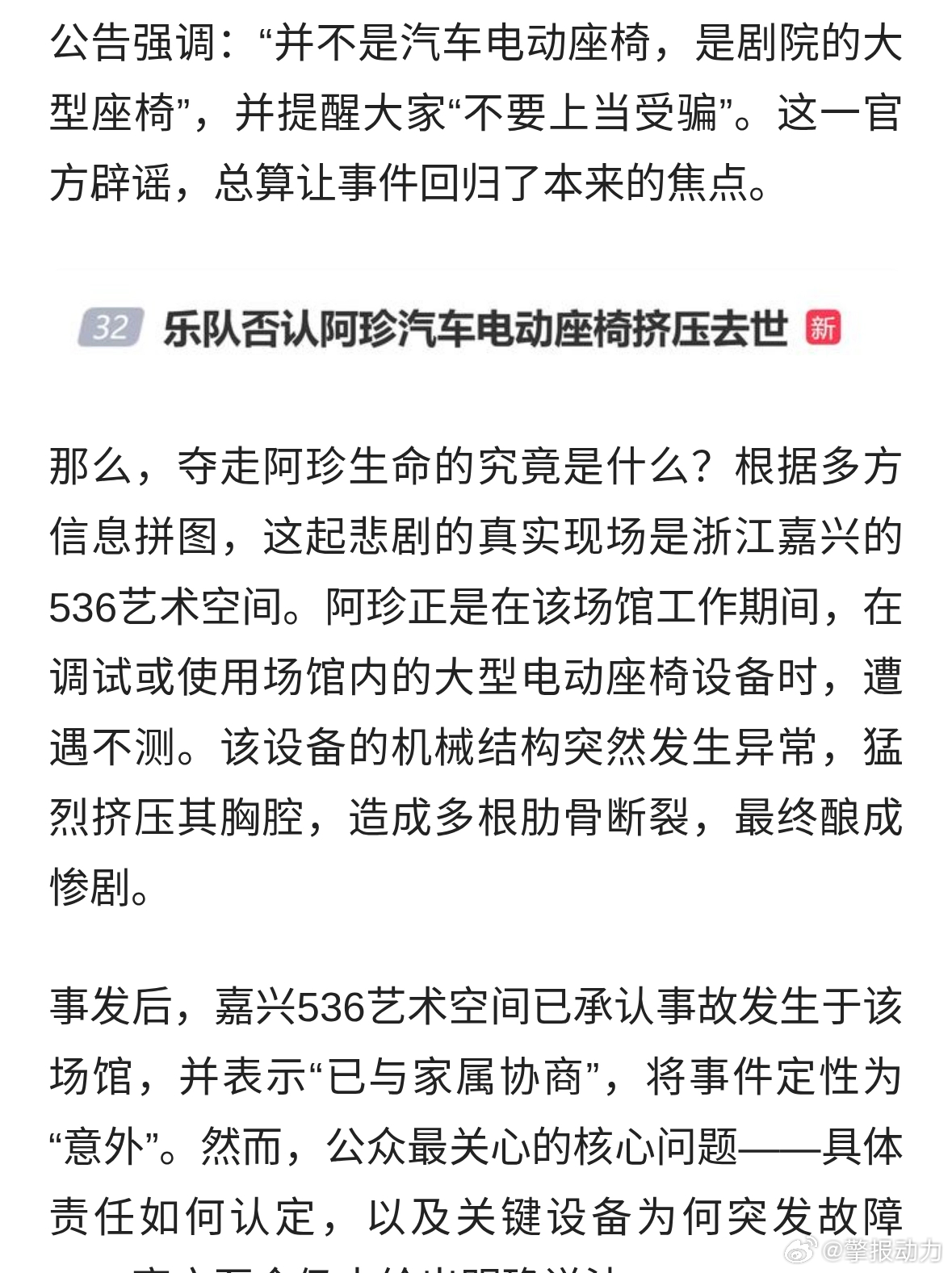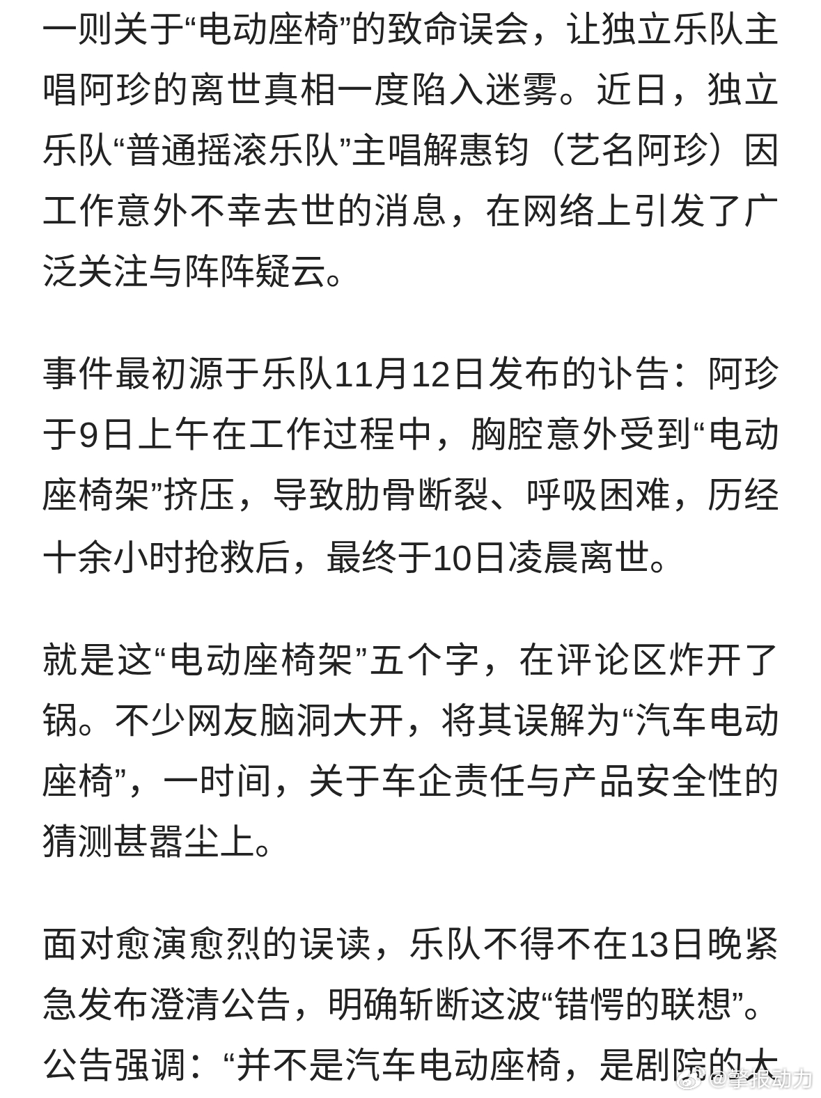 乐队否认阿珍汽车电动座椅挤压去世:是剧院的大型座椅