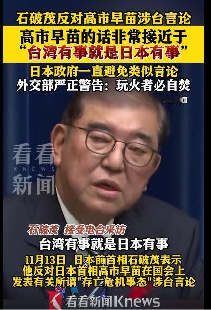 石破茂“旗帜鲜明”的反对高市早苗涉台言论。他表示历届日本政府都在避免类似的话直接表达出来,但高市早苗却说了出来。他认为这样很不明智。针对高市的暴论,我们这边也给予了严正警告:玩火者必自焚。当初石破茂辞职的时候,曾说希望高市不要把日本带向歧途。我估计那个时候,石破茂就知道高市的心思。没曾想,他的担心应验了。不出意外的话,高市会把日本带向火坑!因为只要那些肮脏的头颅伸过来,我们就会斩断!