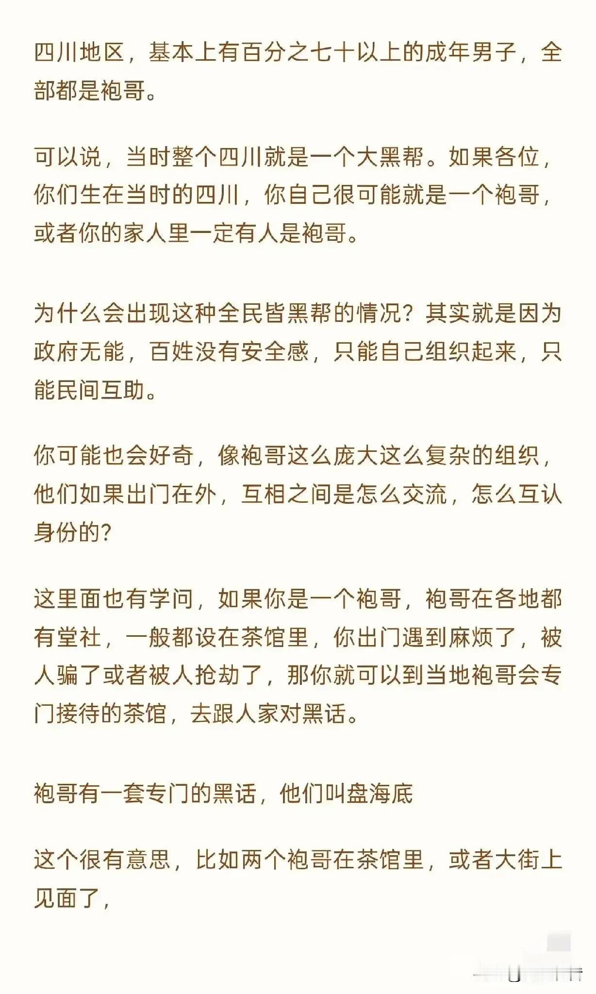 你脑海中真实的民国到底是什么样子?如果出现的仅仅是如雷贯耳的大师的名字,那就过于过于肤浅了。 我分享的这篇文章主要以民国时代四川为例,讲述了民国禁毒成效、县衙官员买卖、乡村士绅治理、袍哥组织发展等四个方面的情况,给我们展现出一个真实的民国社会生活场景。你读过之后,或许会对民国有一个更加全面的认知与了解。