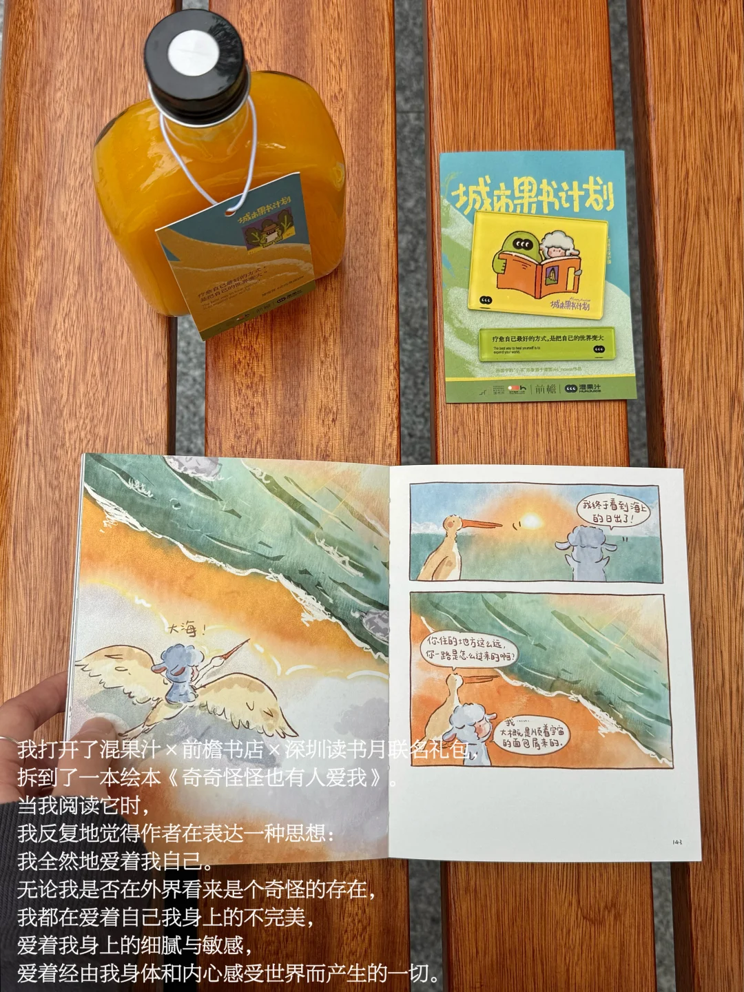 我打开了联名限定能量盒,拆到了一本绘本《奇奇怪怪也有人爱我》。当我阅读它时,我反复地觉得作者在表达一种思想:我全然地爱着我自己。